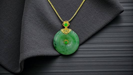 Emperors' Round Burmese A-Jadeite 19.50 mm Donut Pendant (with 18K Yellow Gold) - Certified - V10