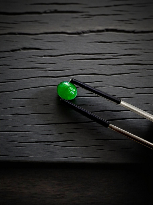 Certified MADE IN JAPAN 1.74 cts. Bright Green Burmese A-Jadeite Oval Cabochon Loose Stone LS23