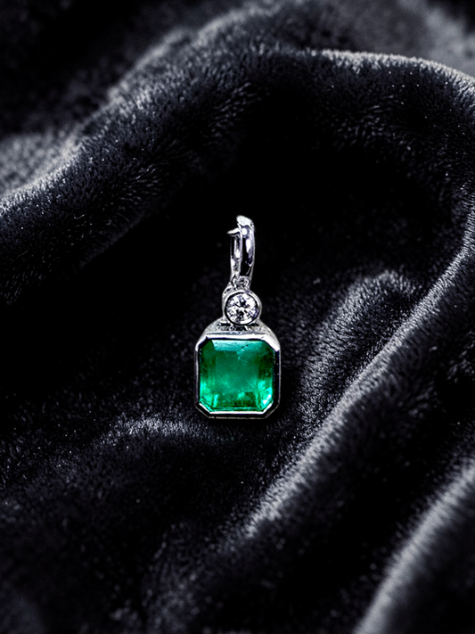 Kariya Certified 1.07 cts. Vivid Green Columbian Emerald Charm Pendant with 18K White Gold and White Diamonds - V1