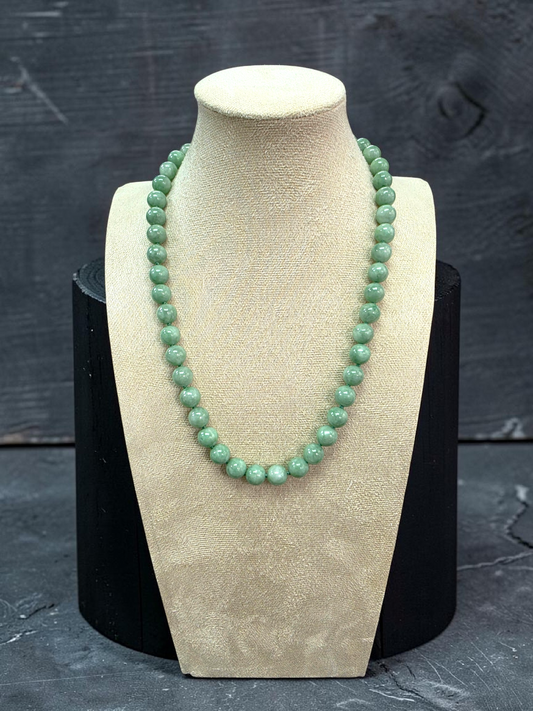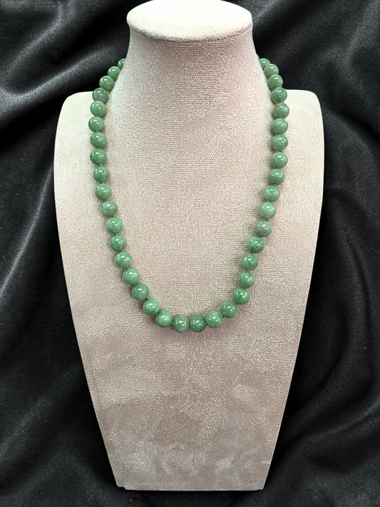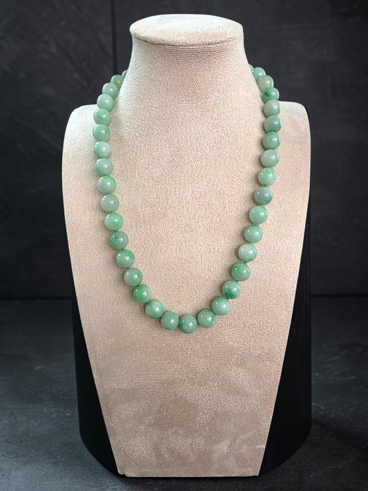 Winter Green Burmese A-Jade Beaded Long Necklace - 18.60 inches (10.50mm Each x 40 Beads) with Sterling Silver 925 - 10016