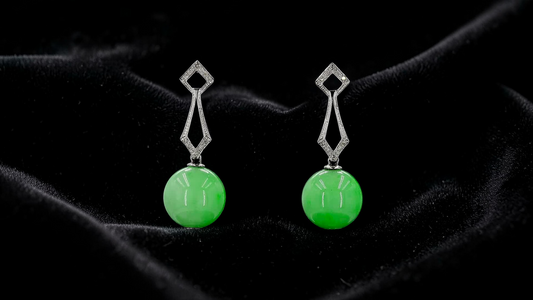Inazawa 10 mm Dangling Beads Bright Green Burmese A-Jade Earrings (with 18K White Gold and White Diamonds) - Certified