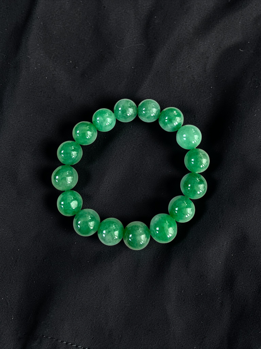 Certified Japanese Bright Green Burmese A-Jade Beaded Bracelet (MADE IN JAPAN) (12.50 - 13.00 mm Each x 16 beads) 05051