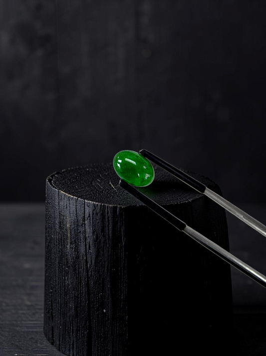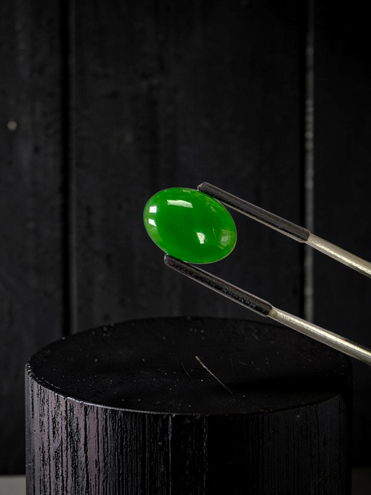 Certified MADE IN JAPAN 3.95 cts. Intense Imperial Green Burmese A-Jadeite Oval Cabochon Loose Stone LS41