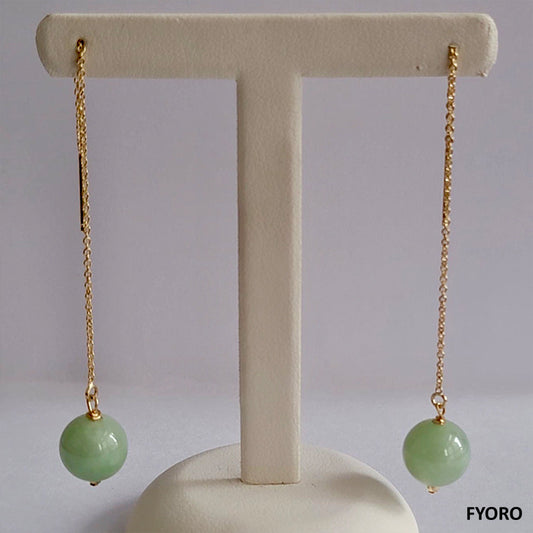 Dangling Spring Burmese A Jade Earrings (with 14K Yellow Gold)