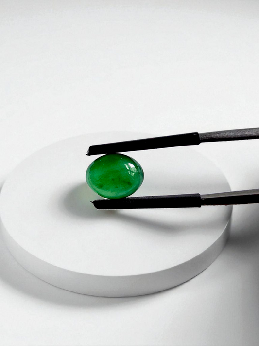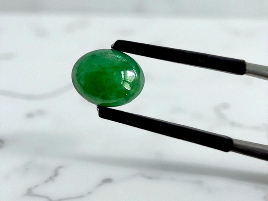 Certified MADE IN JAPAN 2.744 cts. Bright Green Burmese A-Jadeite Oval Cabochon Loose Stone LS15