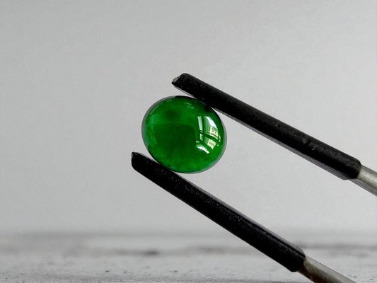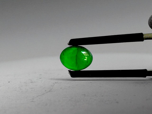 Certified MADE IN JAPAN 1.65 cts. Intense Vivid-Imperial Green Burmese A-Jadeite Oval Cabochon Loose Stone LS13