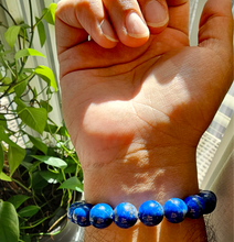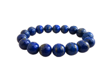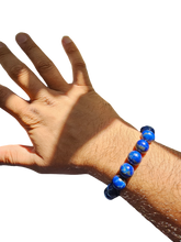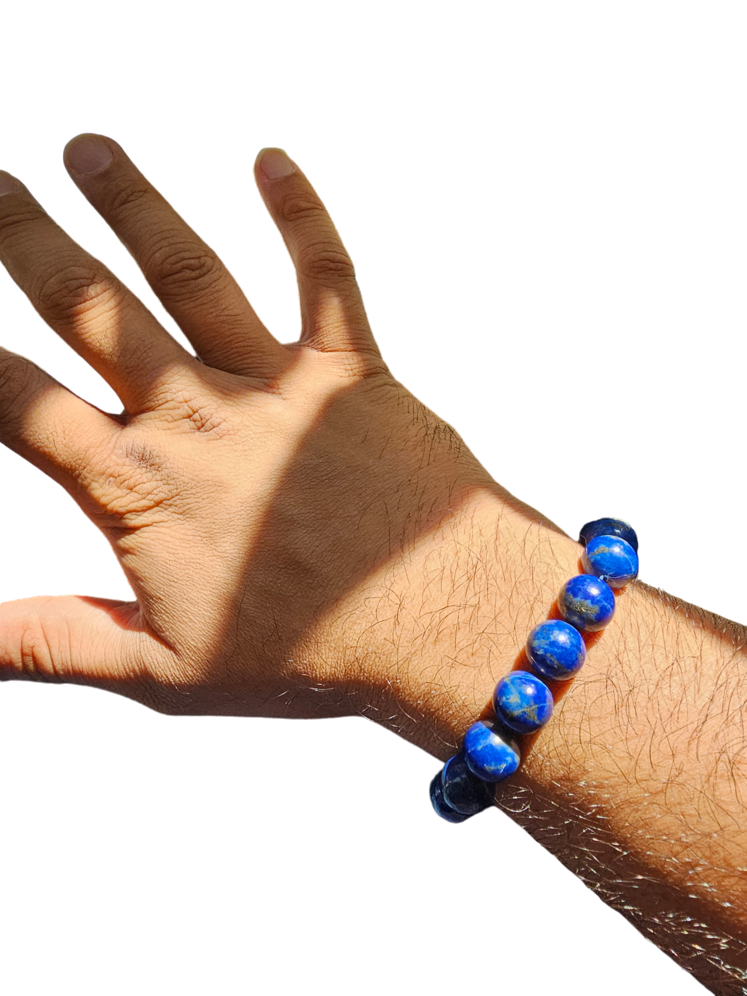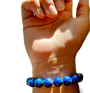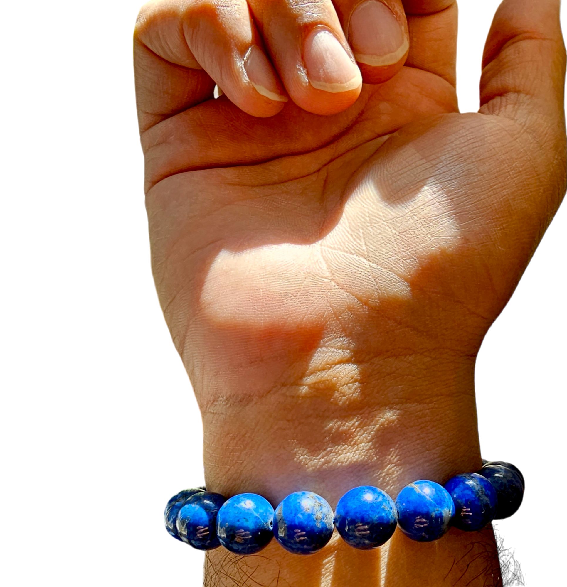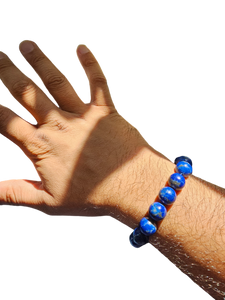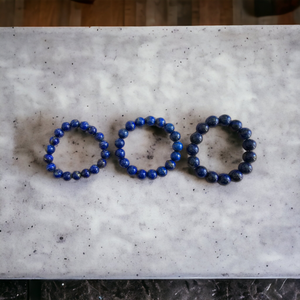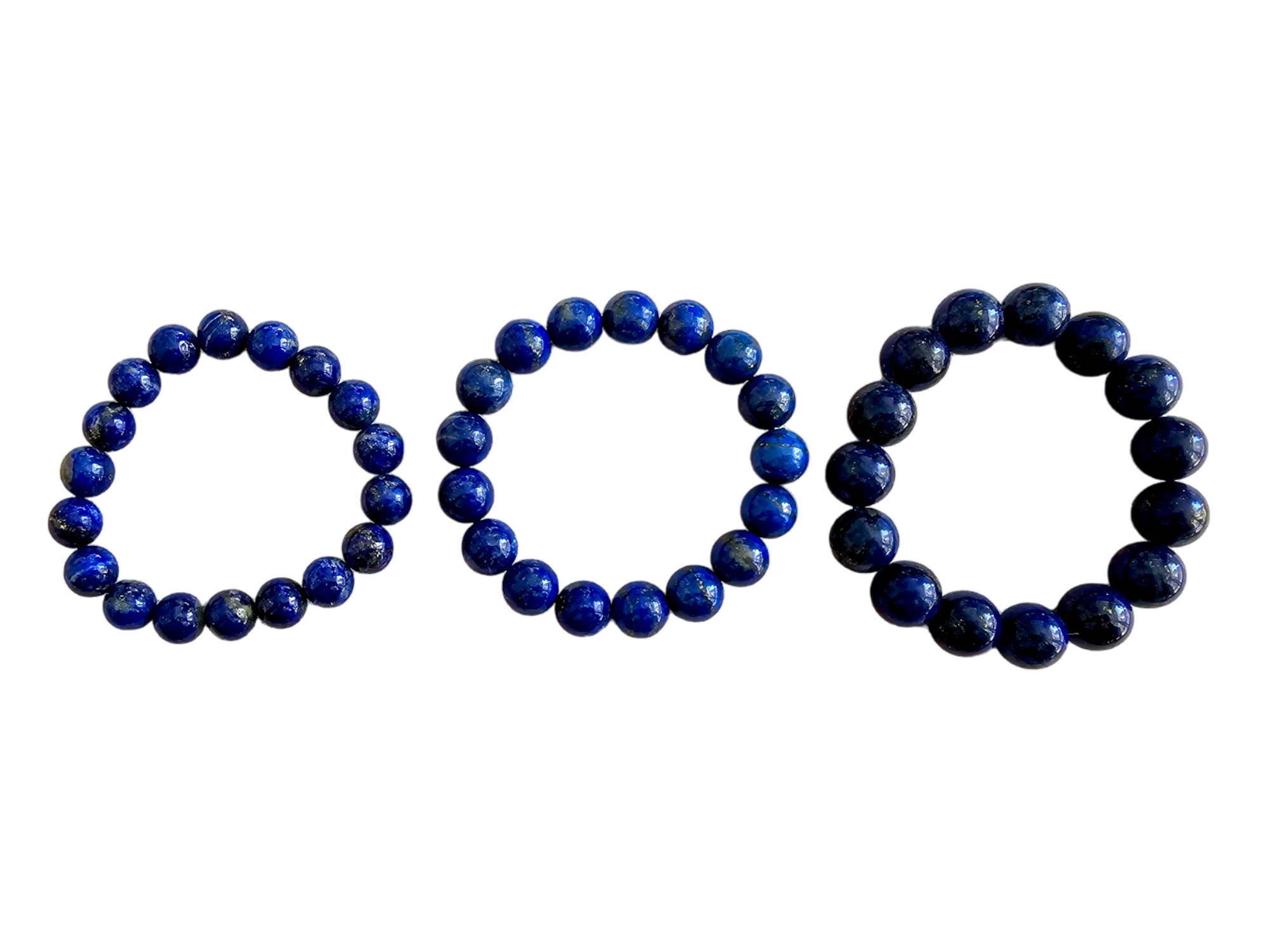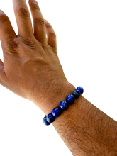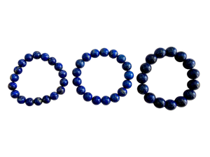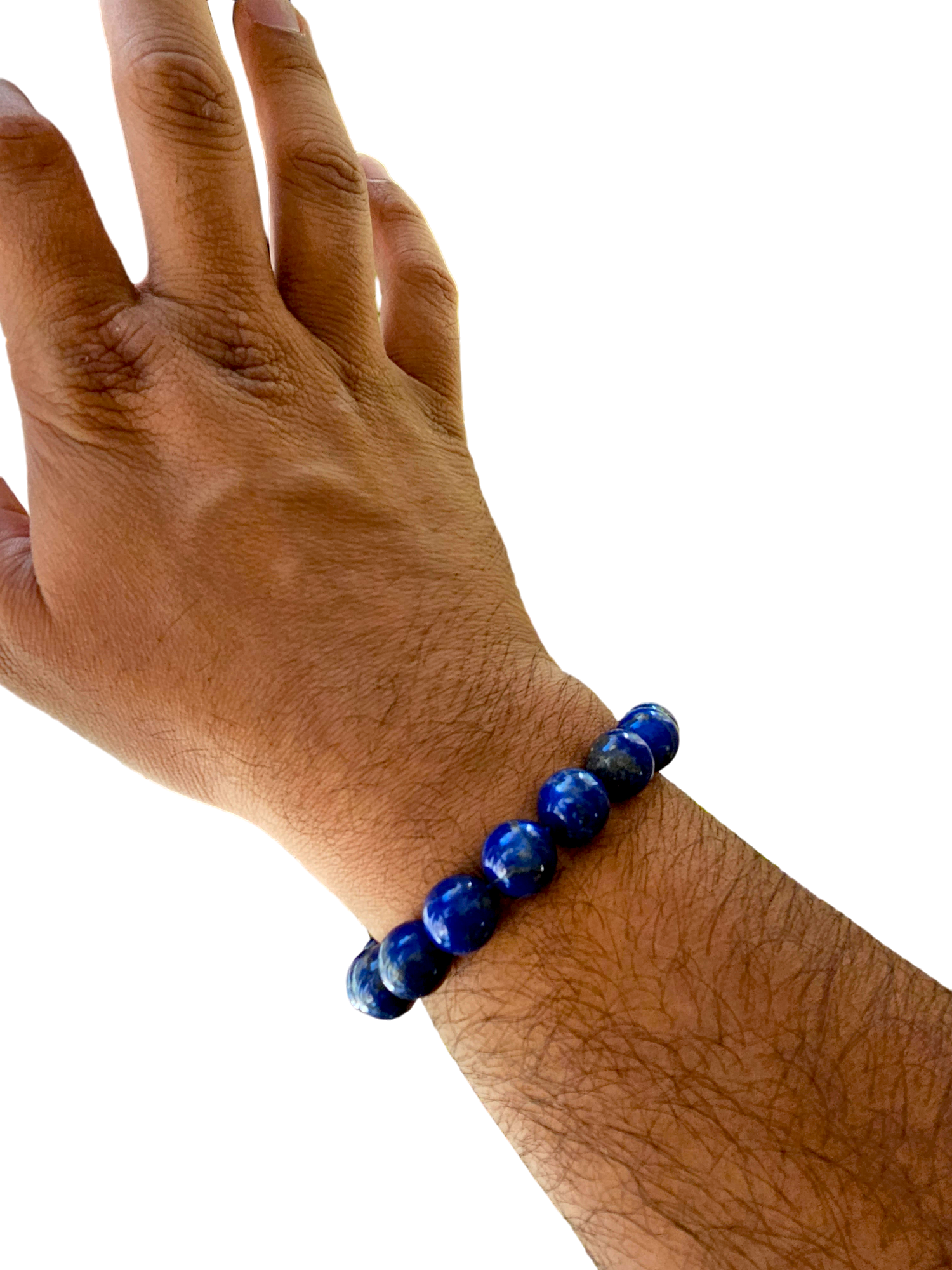 Using handpicked, 100% natural and untreated Lapis Lazuli Beads, our crafters created a visually stunning bracket to show off the characteristic hues and marbling of high grade Lapis Lazuli. Available in 3 bead sizes (11mm, 12mm, and 14mm Each)