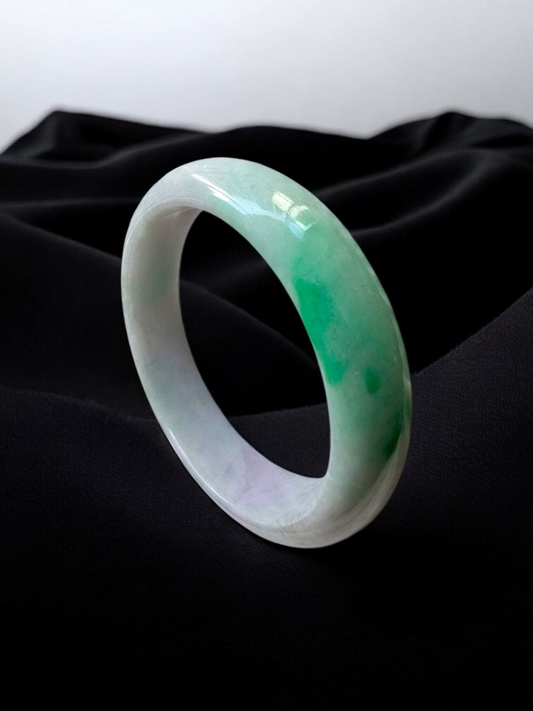 Earth's Burmese Green and Lavender A-Jade Round Bangle Bracelet - Certified 08821