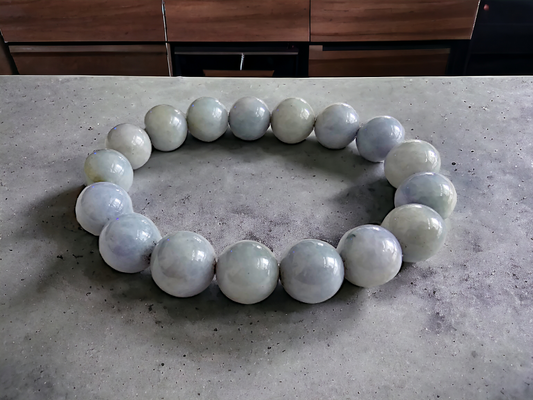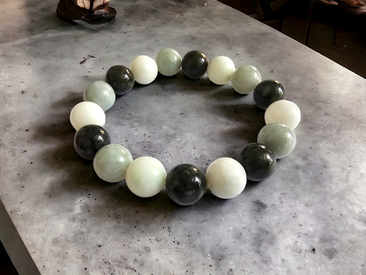Imperial Japanese Green Burmese A-Jade Beaded Bracelet (MADE IN JAPAN) (12mm Each x 16 beads) 05014