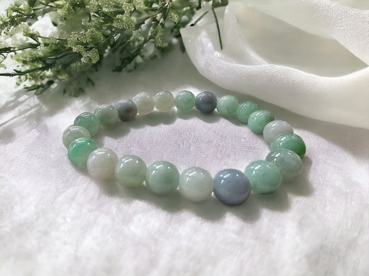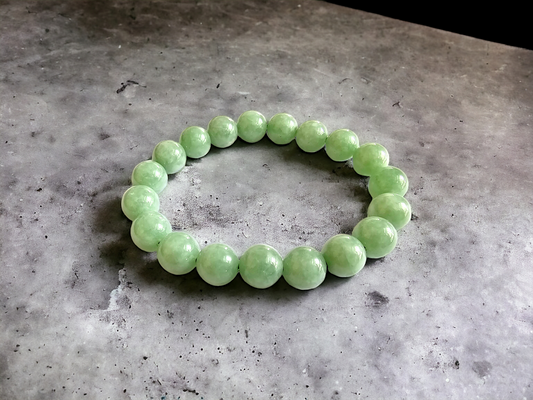 Imperial Japanese Green Burmese A-Jade Beaded Bracelet (MADE IN JAPAN) (10.5mm Each x 19 beads) 05029