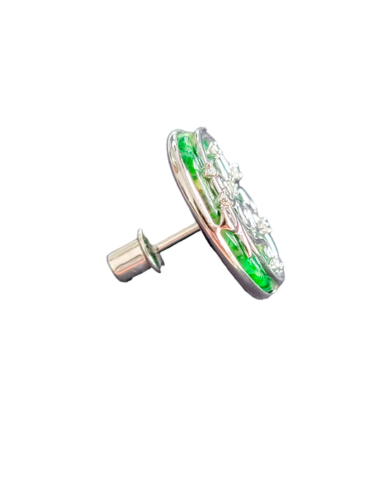 ベルサイユの庭園ブローチ (手彫りのビルマ A ジェダイト、18K ホワイト ゴールド、ホワイト ダイヤモンド付き)