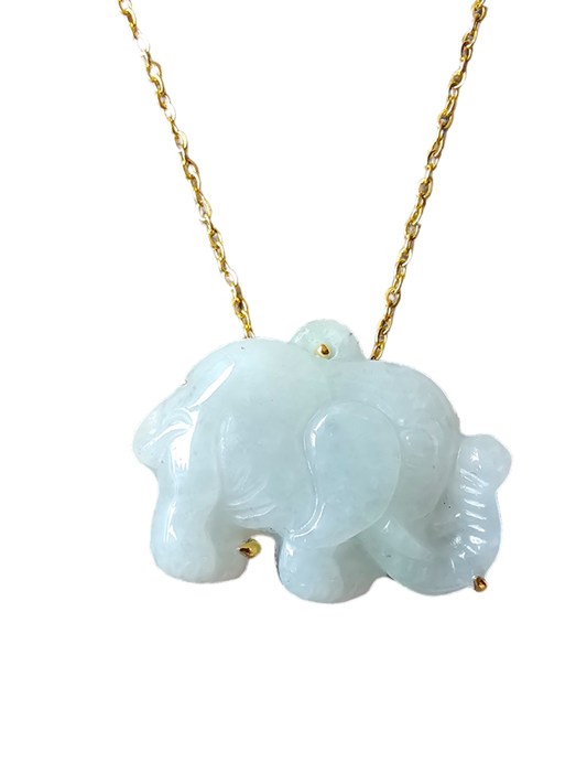 神聖なビルマ産 A ジェダイト象のブローチとペンダント (18K ゴールド付き)