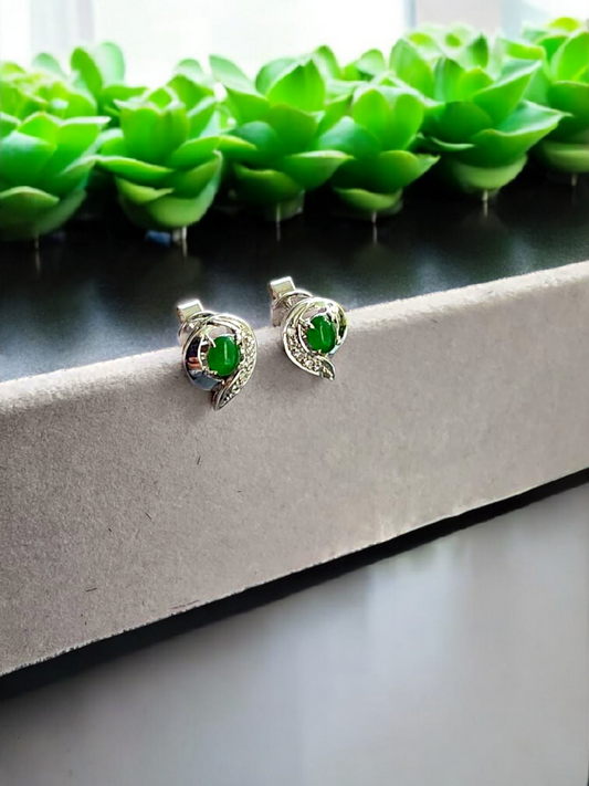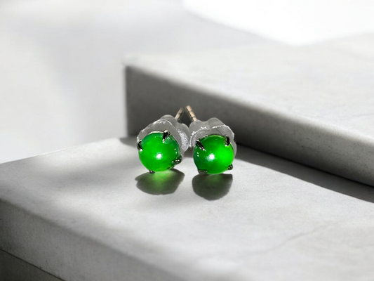 Vert Imperial Green Burmese A-Jade Stud Earrings (with 18K White Gold) - Certified