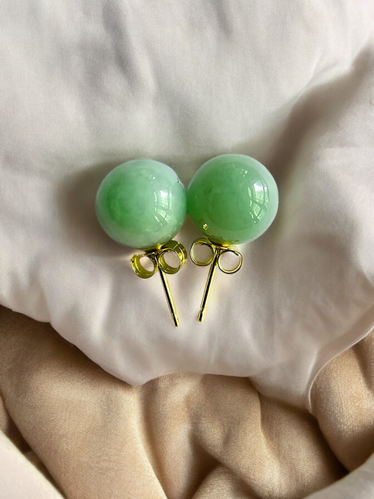 Harmony Burmese Green A-Jade 10mm Beaded Stud Earrings (with 18K Yellow Gold)