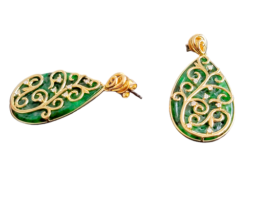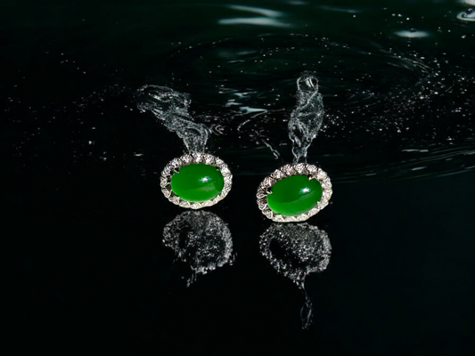 Empress Suiko's Imperial Green Burmese A-Jade Stud Earrings with Diamonds and 18K White Gold - Certified