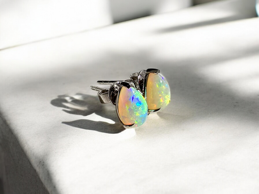 Australian Opal Stud Earrings with 14K White Gold - 3001
