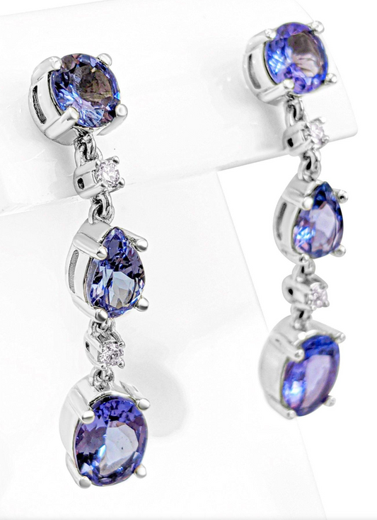 Alluring Drop and Dangle Tanzanite Link Earrings (with light pink Diamonds and 14K White Gold)