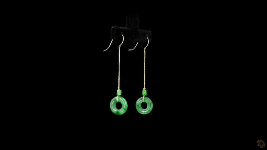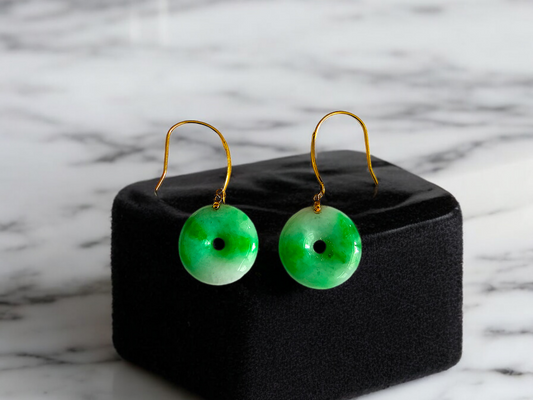 Enchanted Donut Drop and Dangle French Hook Burmese A-Jade Earrings (with 18K Yellow Gold) - Certified