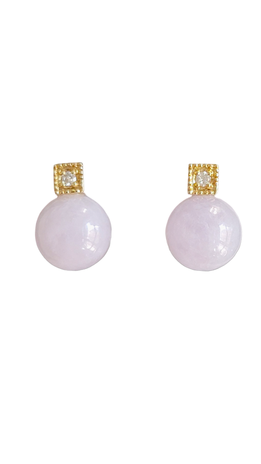 Harmony Burmese Lavender Purple A-Jade 10mm Beaded Stud Earrings (with 18K Yellow Gold)