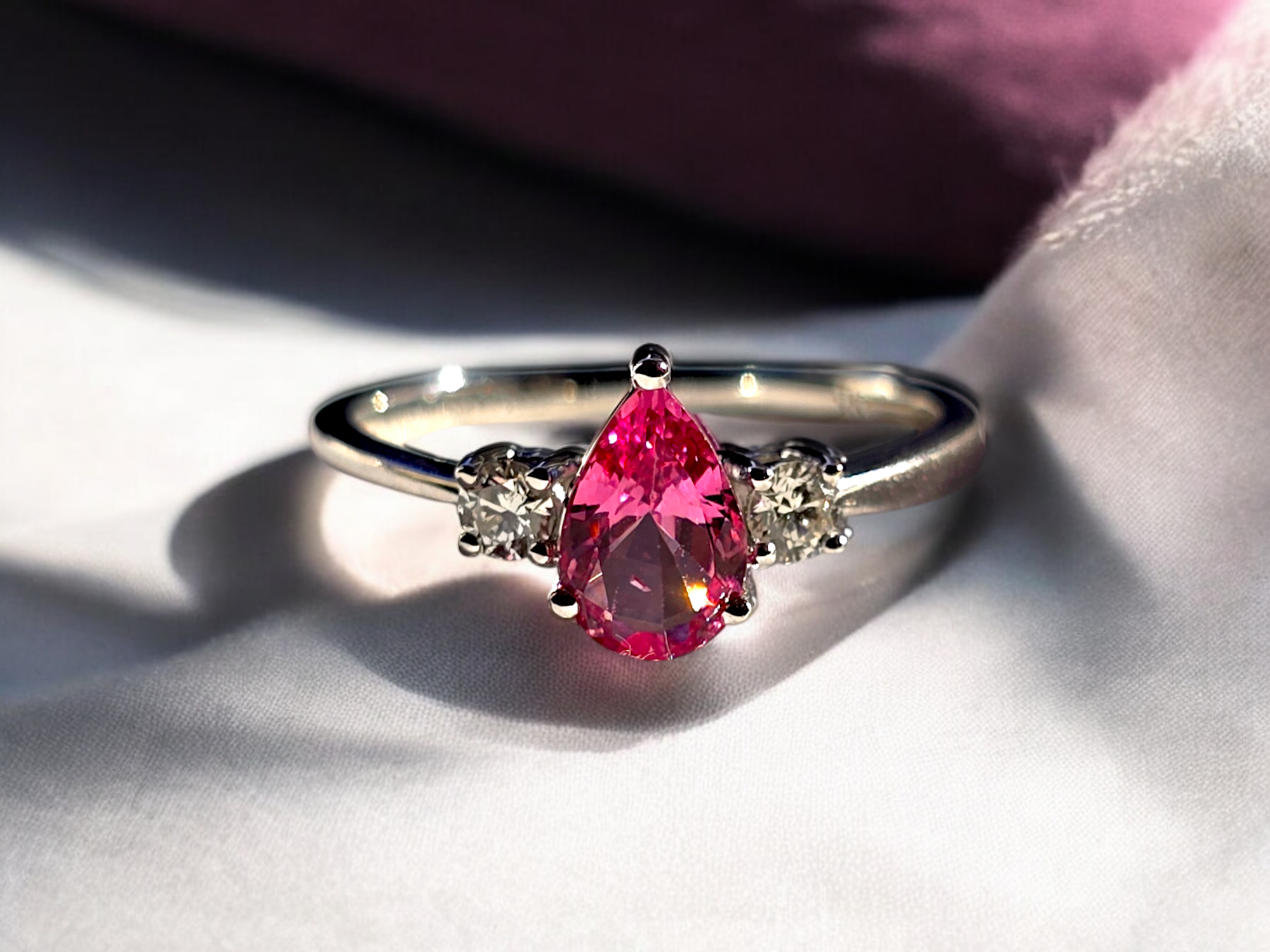 Certified Tokyo Pear Shaped 0.85 cts. No Heat Natural Padparadscha Sapphire Ring with 18K White Gold and White Diamonds - R4