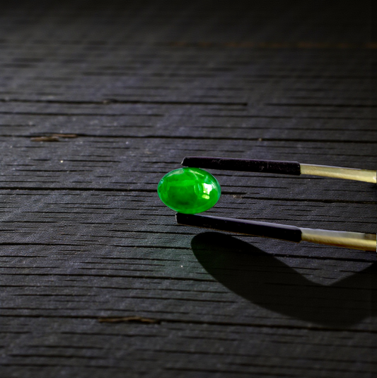 Certified MADE IN JAPAN 2.192 cts. Bright Imperial Green Burmese A-Jadeite Oval Cabochon Loose Stone LS30