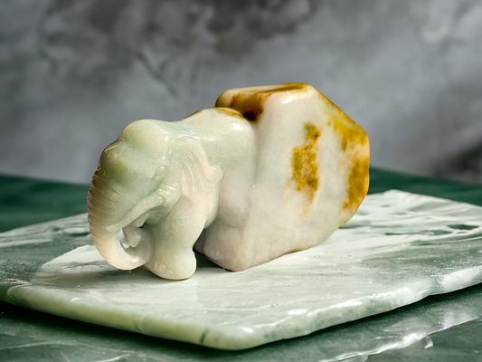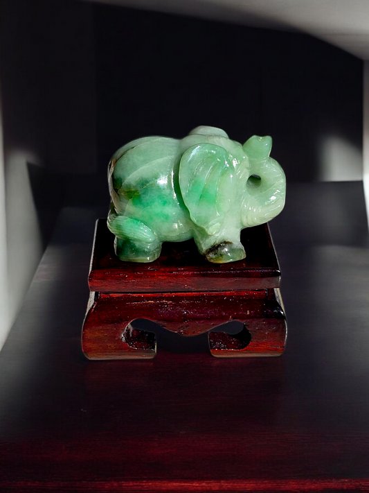 Royal Elephant Carved Burmese A-Jadeite Ornament Showpiece with Stand