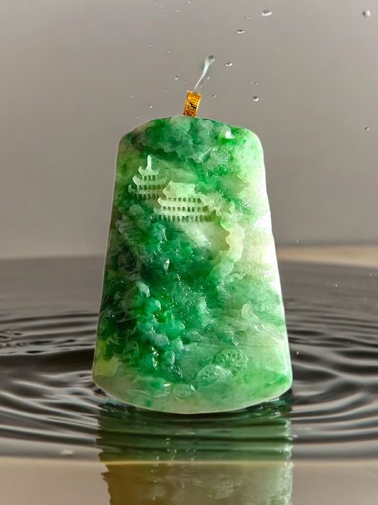 Adventures of the Orient Burmese A-Jadeite Pendant and Showpiece (with 18K Yellow Gold) - Certified