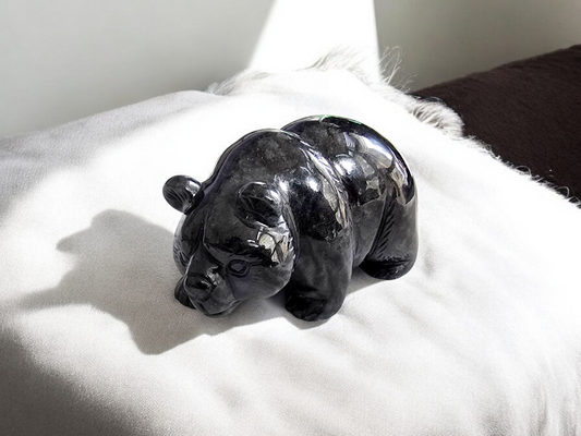 Patrolling Bear Black Burmese A-Jadeite Ornament Showpiece with a Wooden Stand