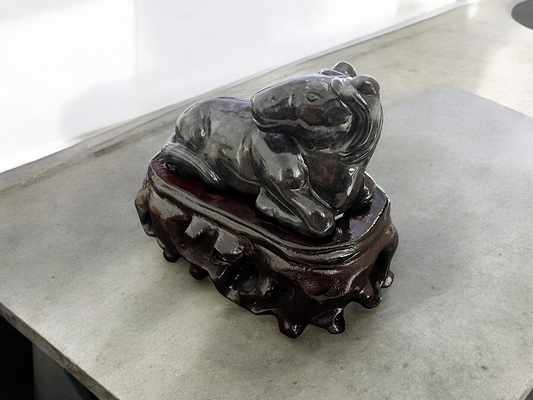 Sitting Horse Black Burmese A-Jadeite Ornament Showpiece with a Wooden Stand