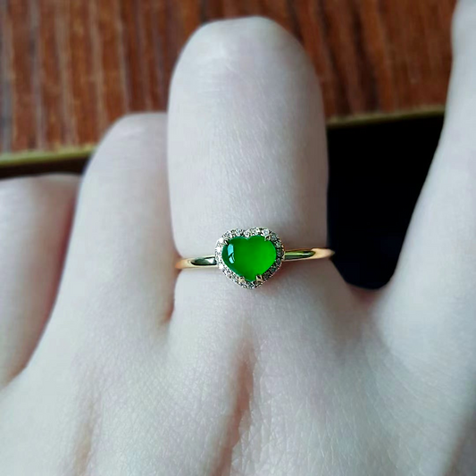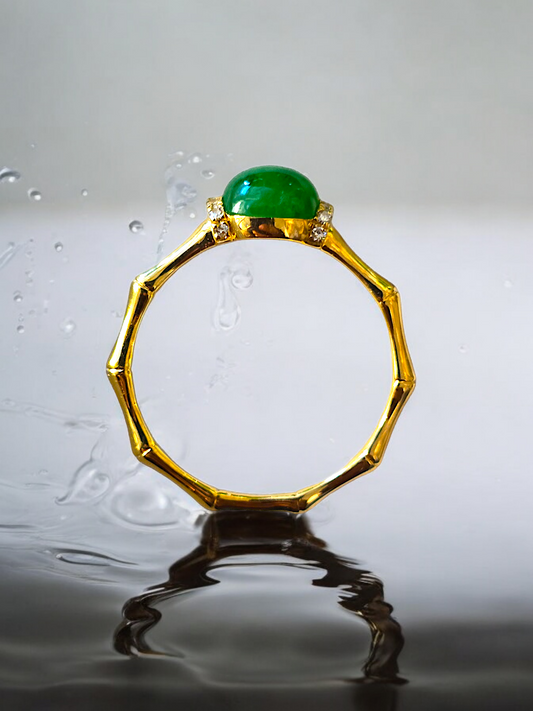 Panda's Oval Imperial Burmese A-Jadeite Cocktail Ring (With White Diamonds and 18K Yellow Gold) - Certified
