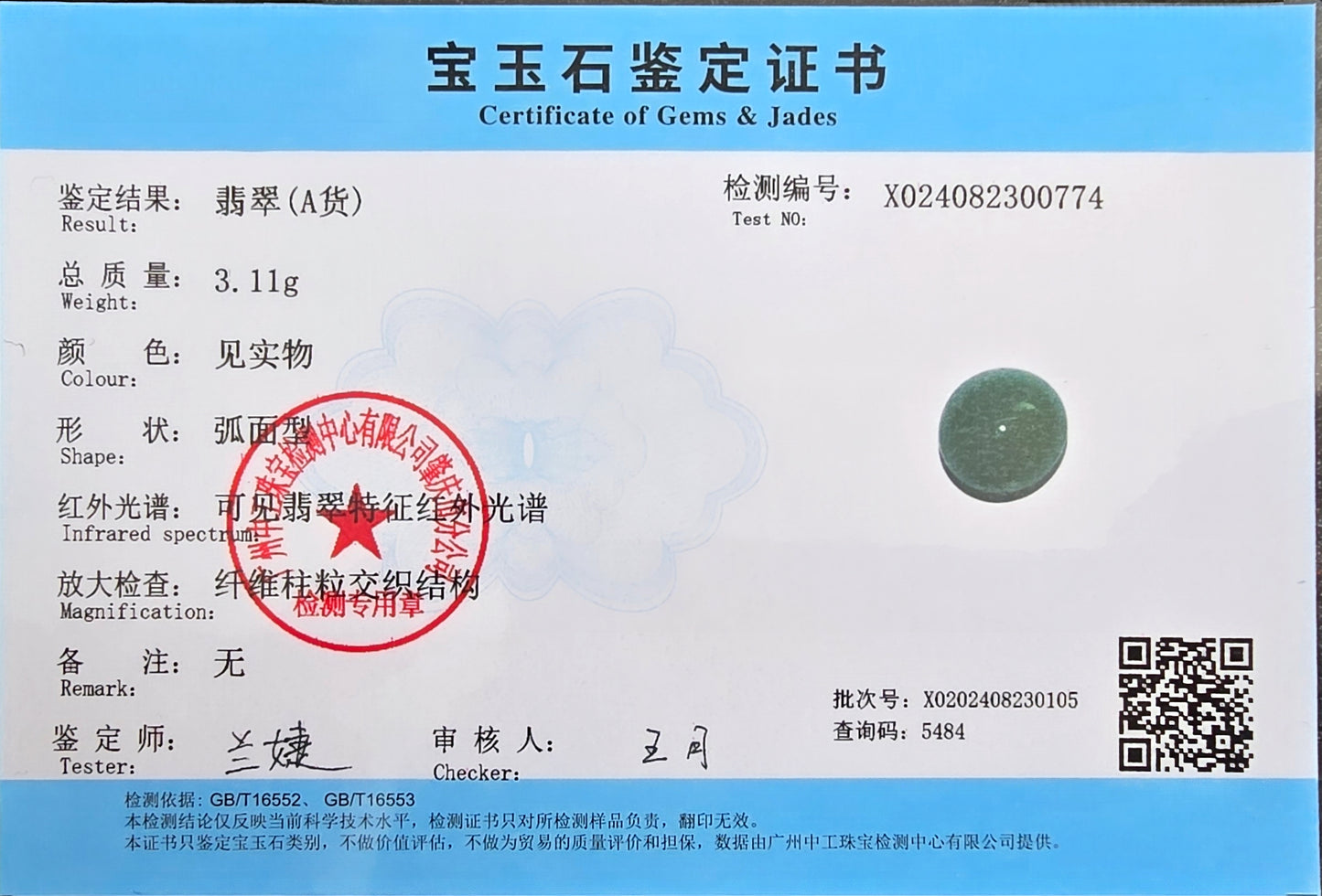 Materials: Deep Bluish-Green Burmese A-Jadeite Cabochon