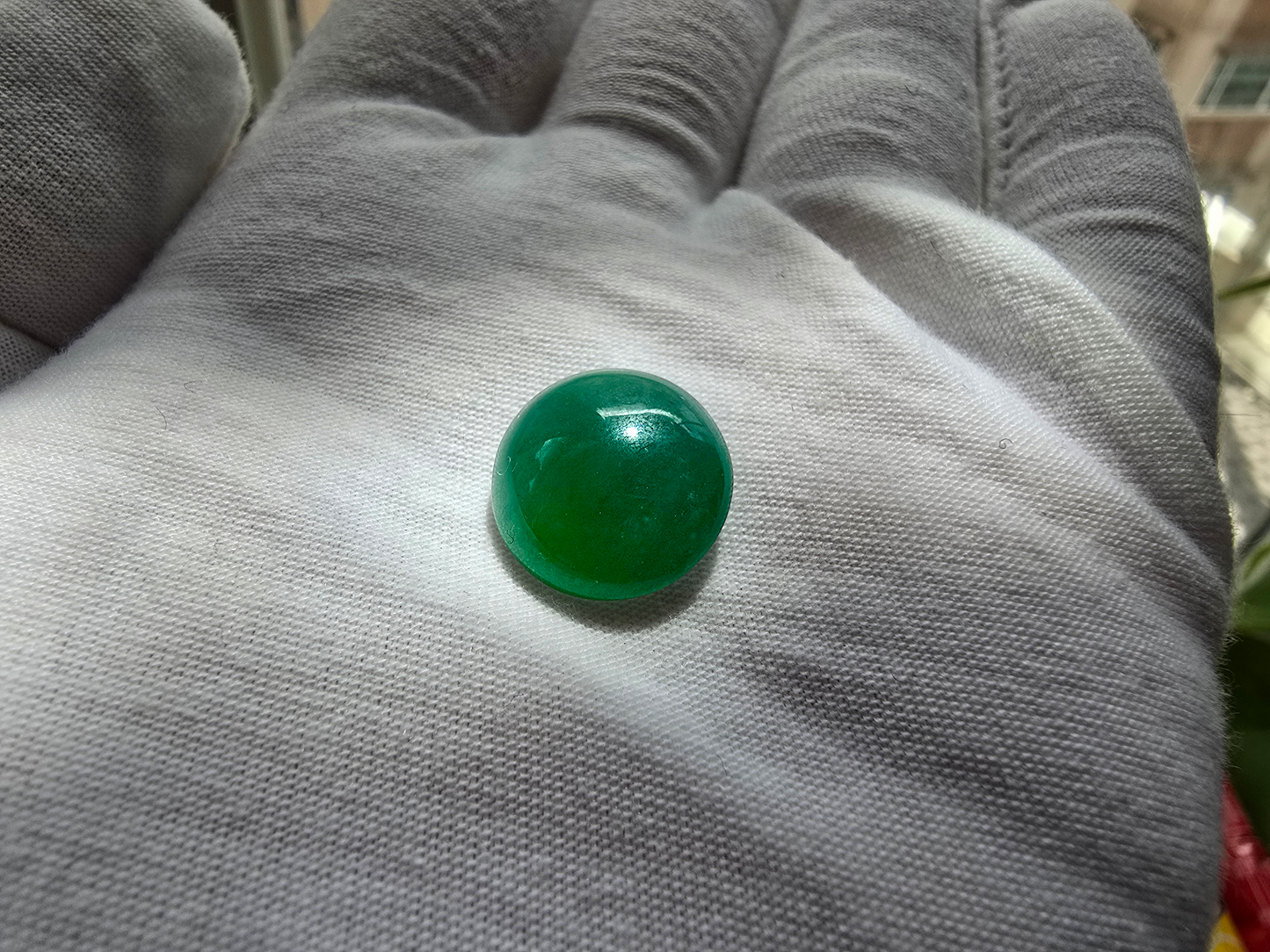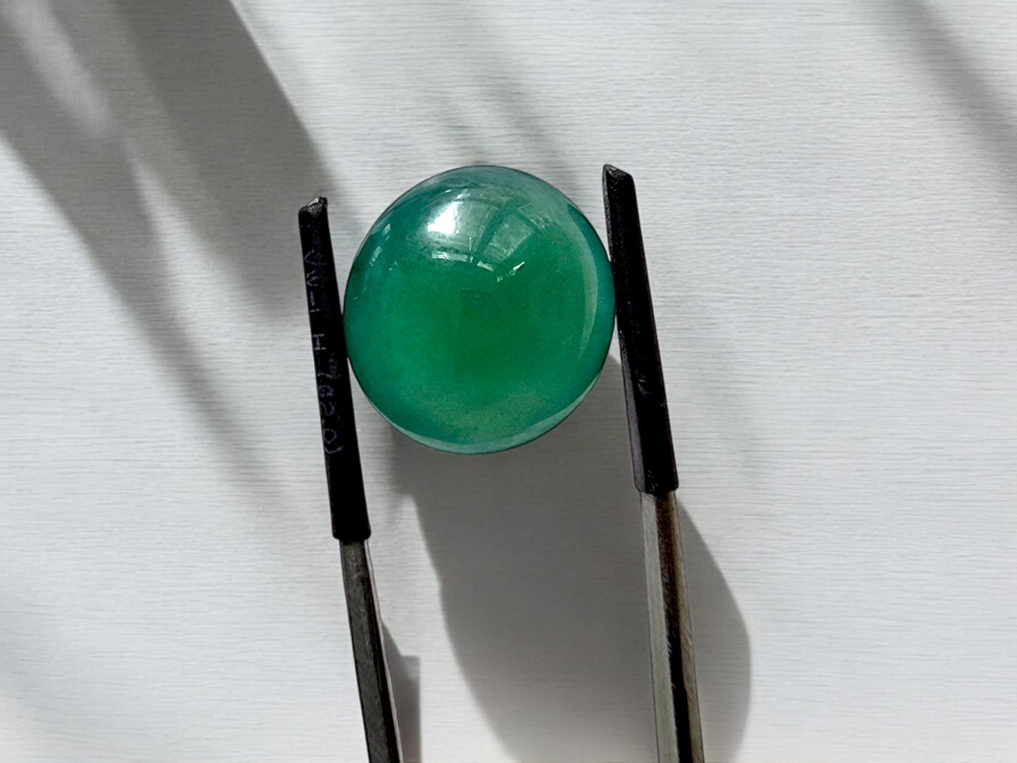15.57 cts. Burmese A-Jadeite Deep Bluish-Green Round Cabochon Loose Stone Certified LS1