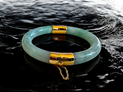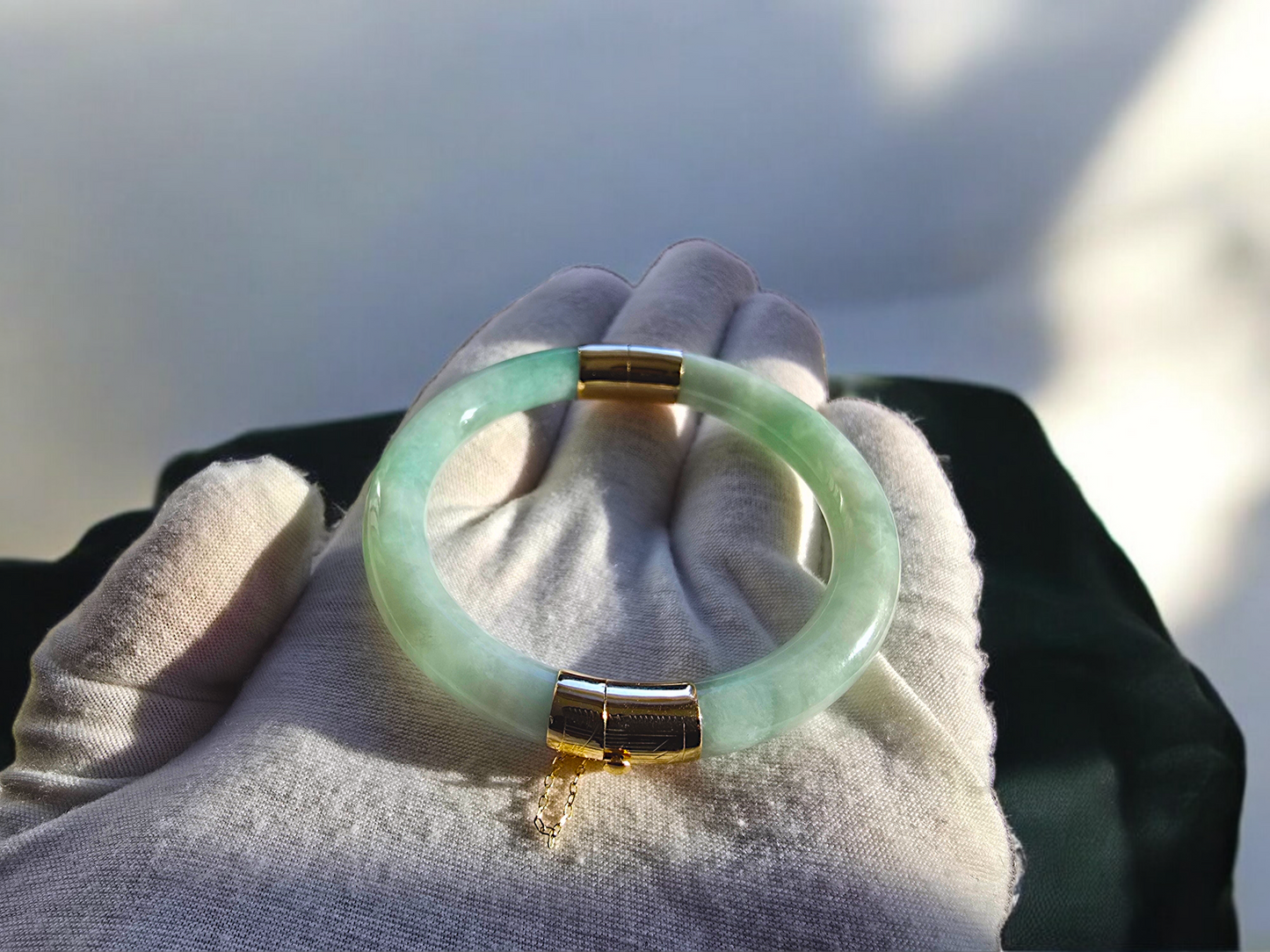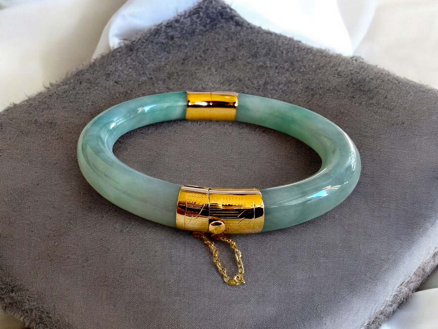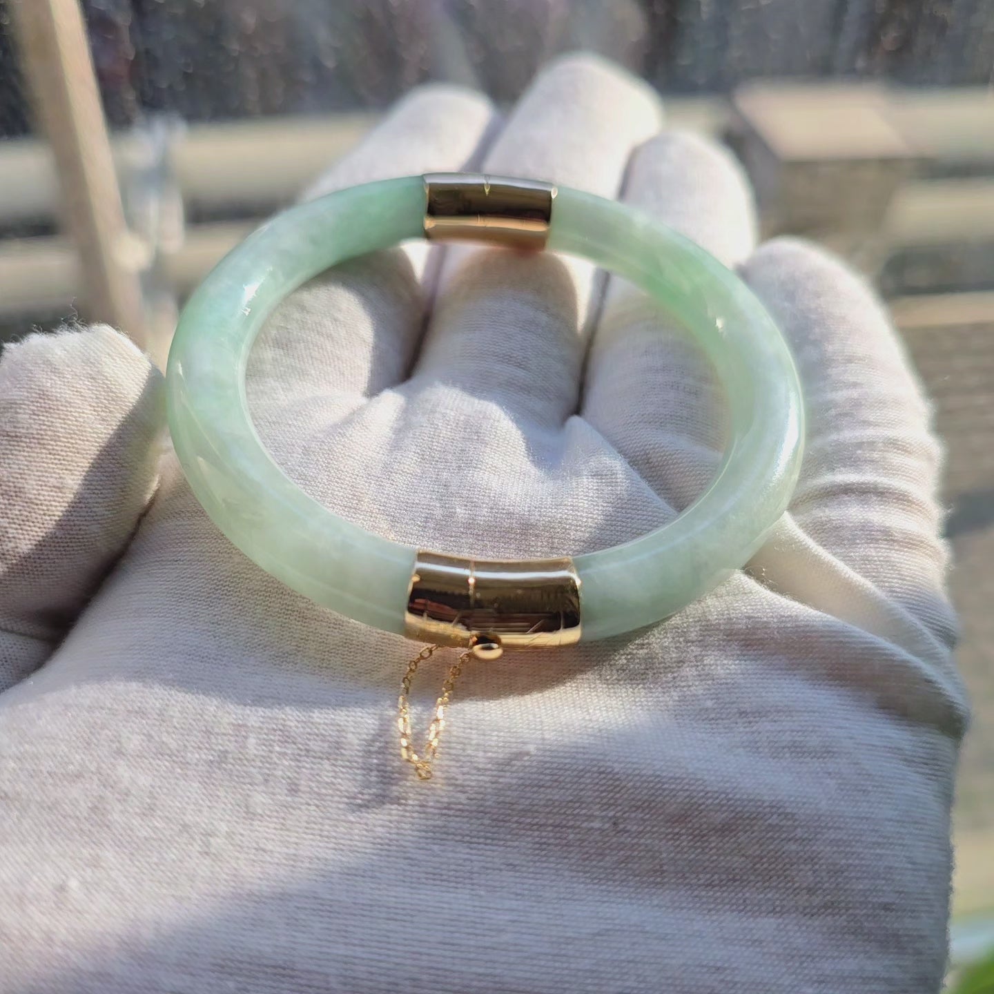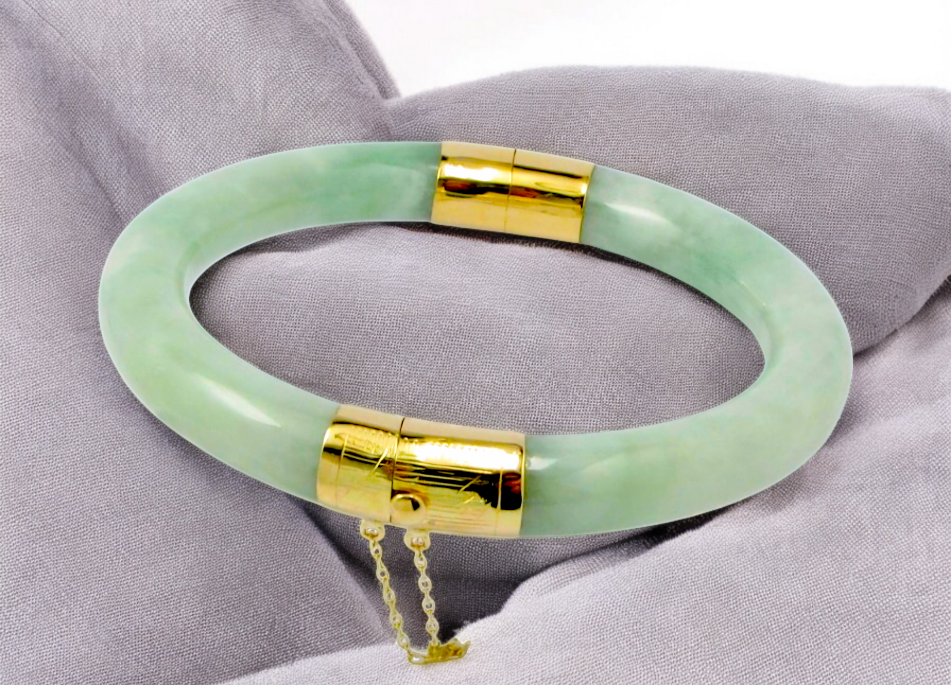 1885 Viceroy's Circular Burmese Green A-Jadeite Jade Bangle Bracelet (with a 14K Solid Yellow Gold Clasp)