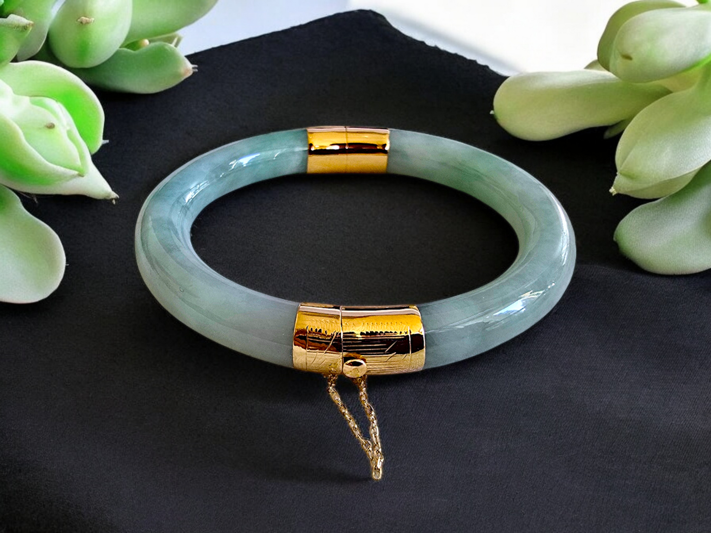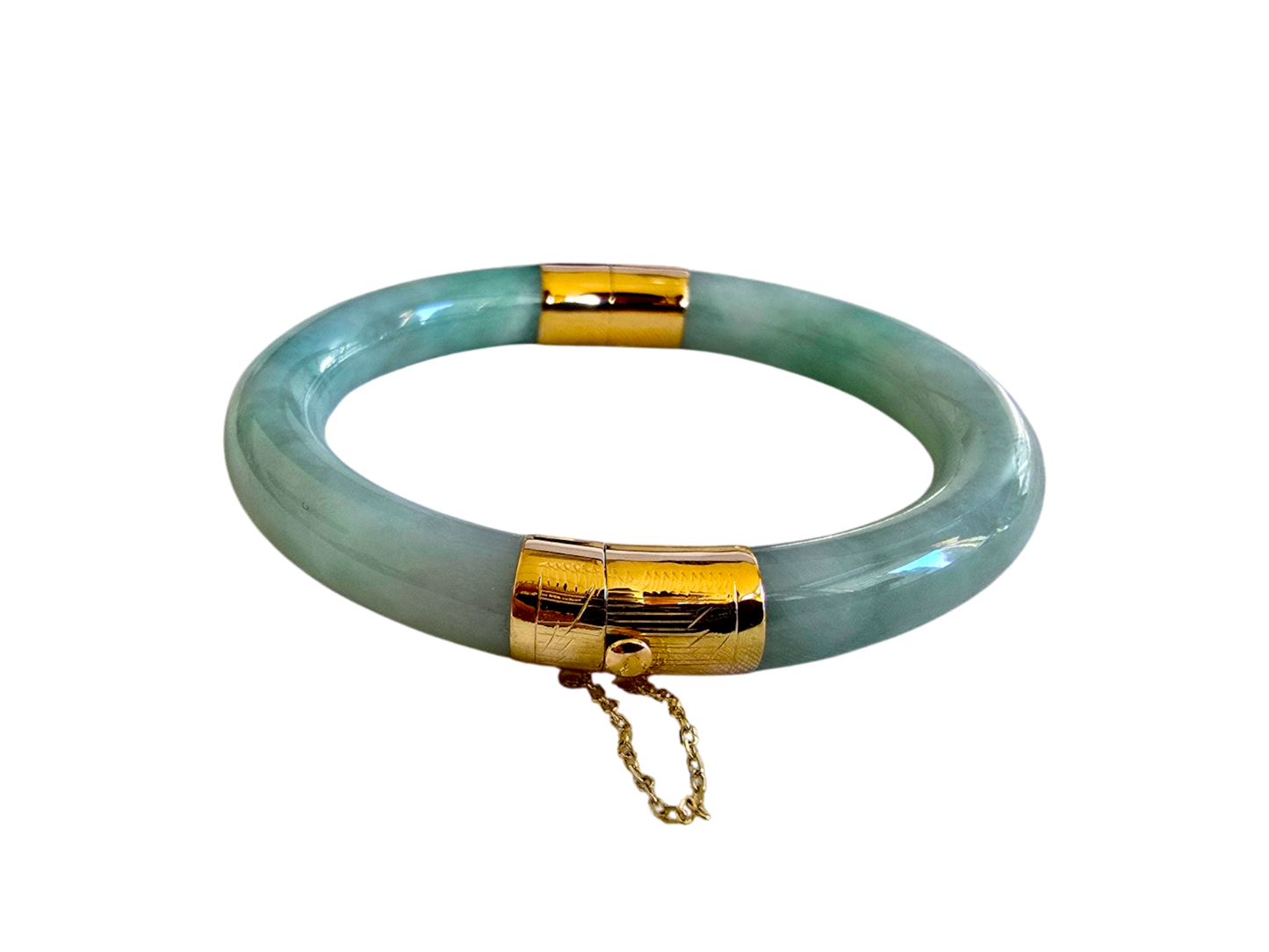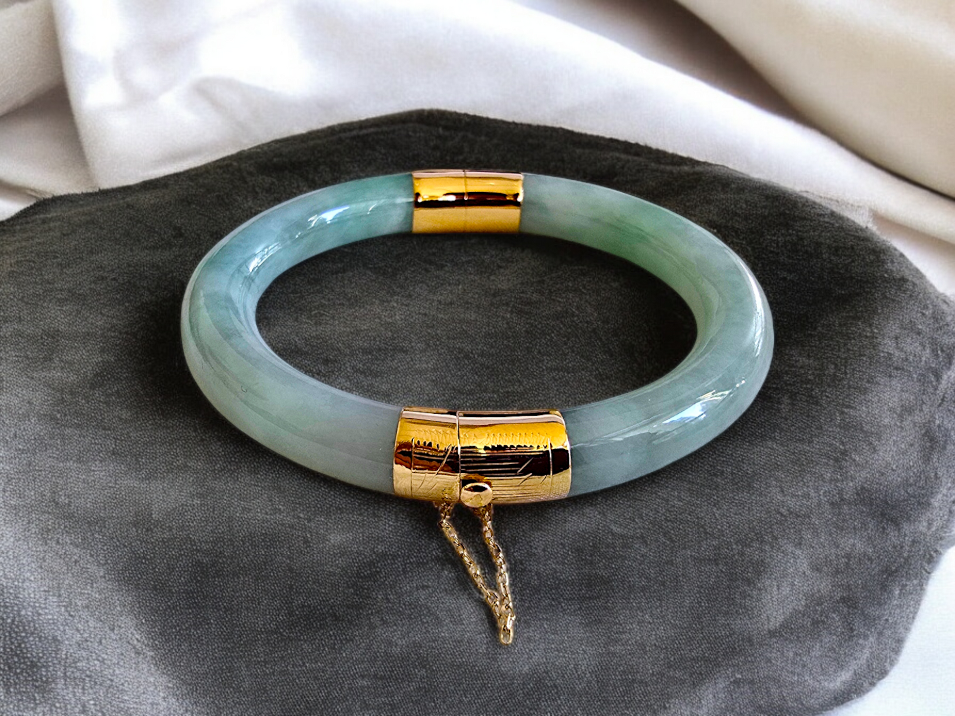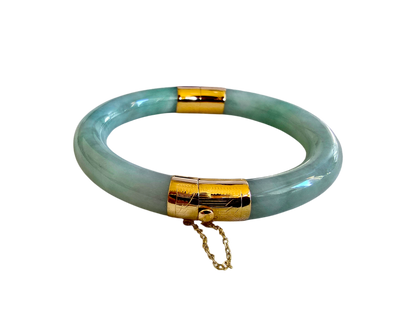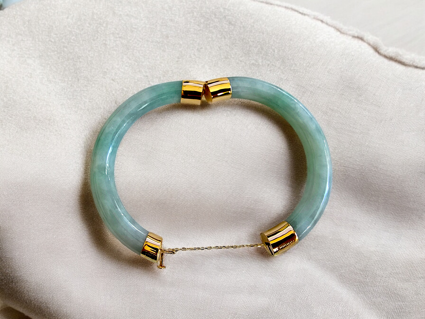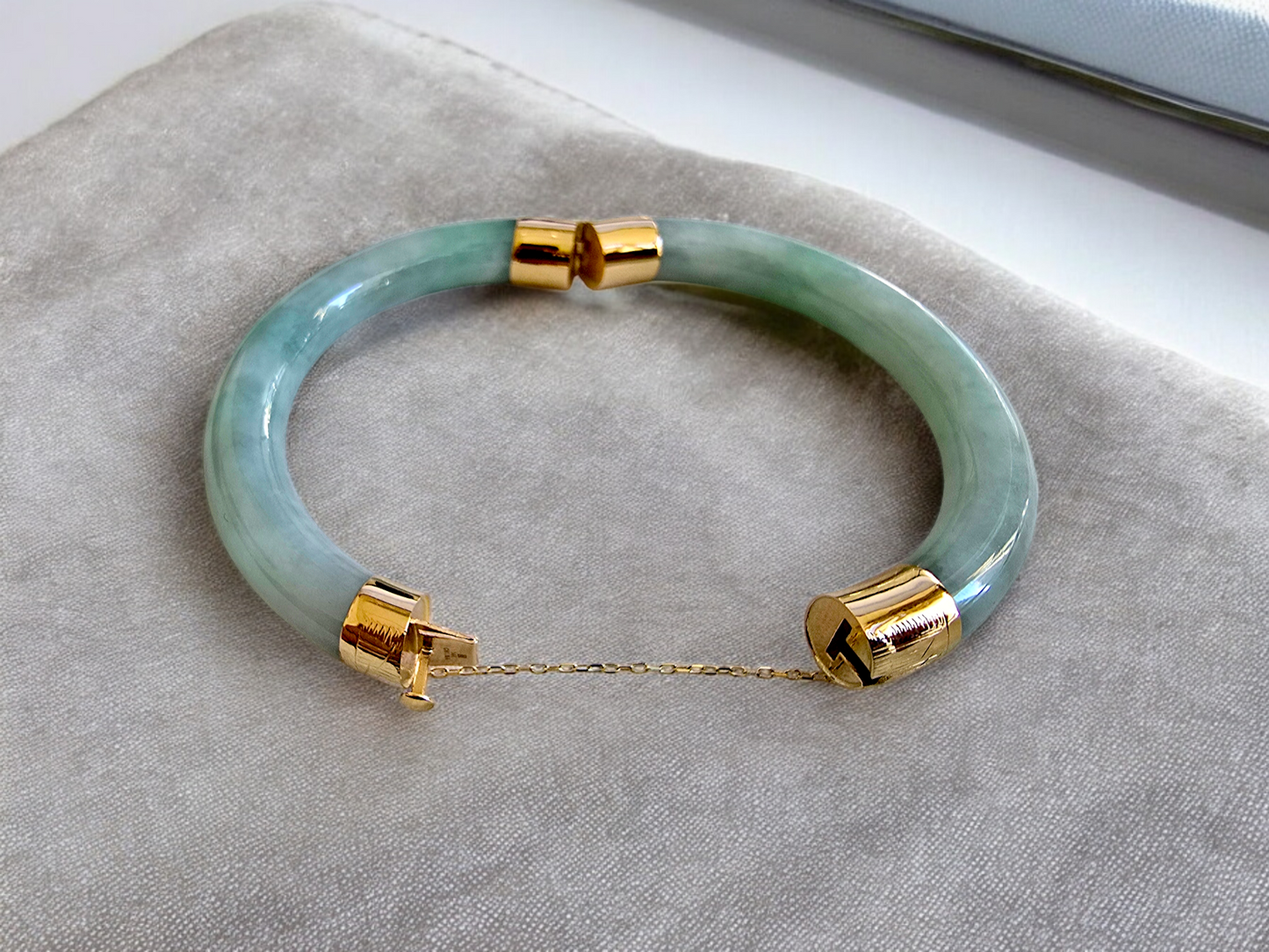 1885 Viceroy's Circular Burmese Green A-Jadeite Jade Bangle Bracelet (with a 14K Solid Yellow Gold Clasp)