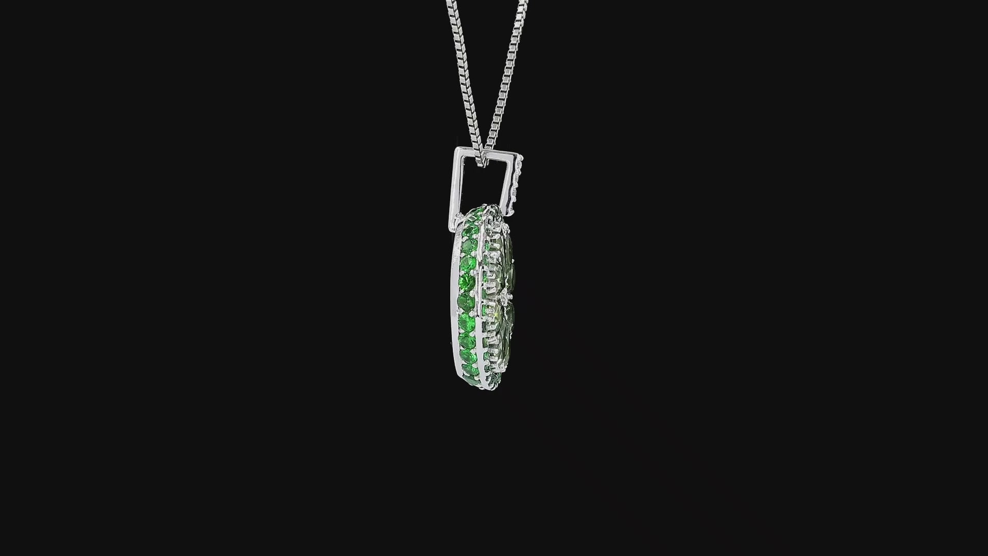 Certified Pendant with pear shaped green Sapphires, round Peridots and white round VS Diamonds and 18K Solid White Gold (MADE IN JAPAN)