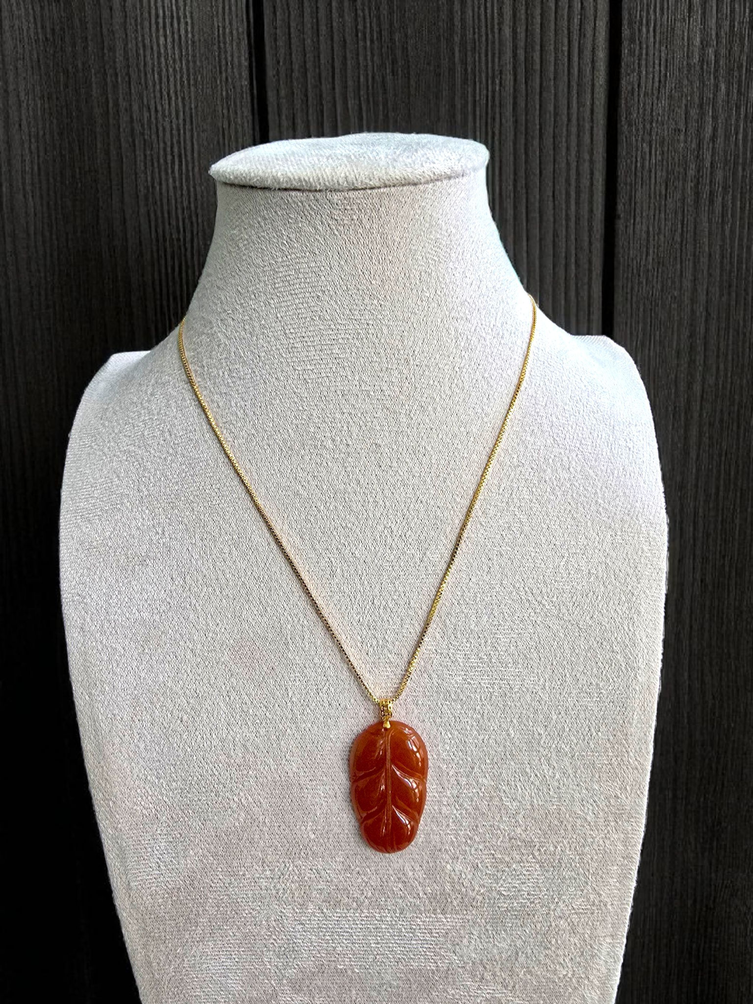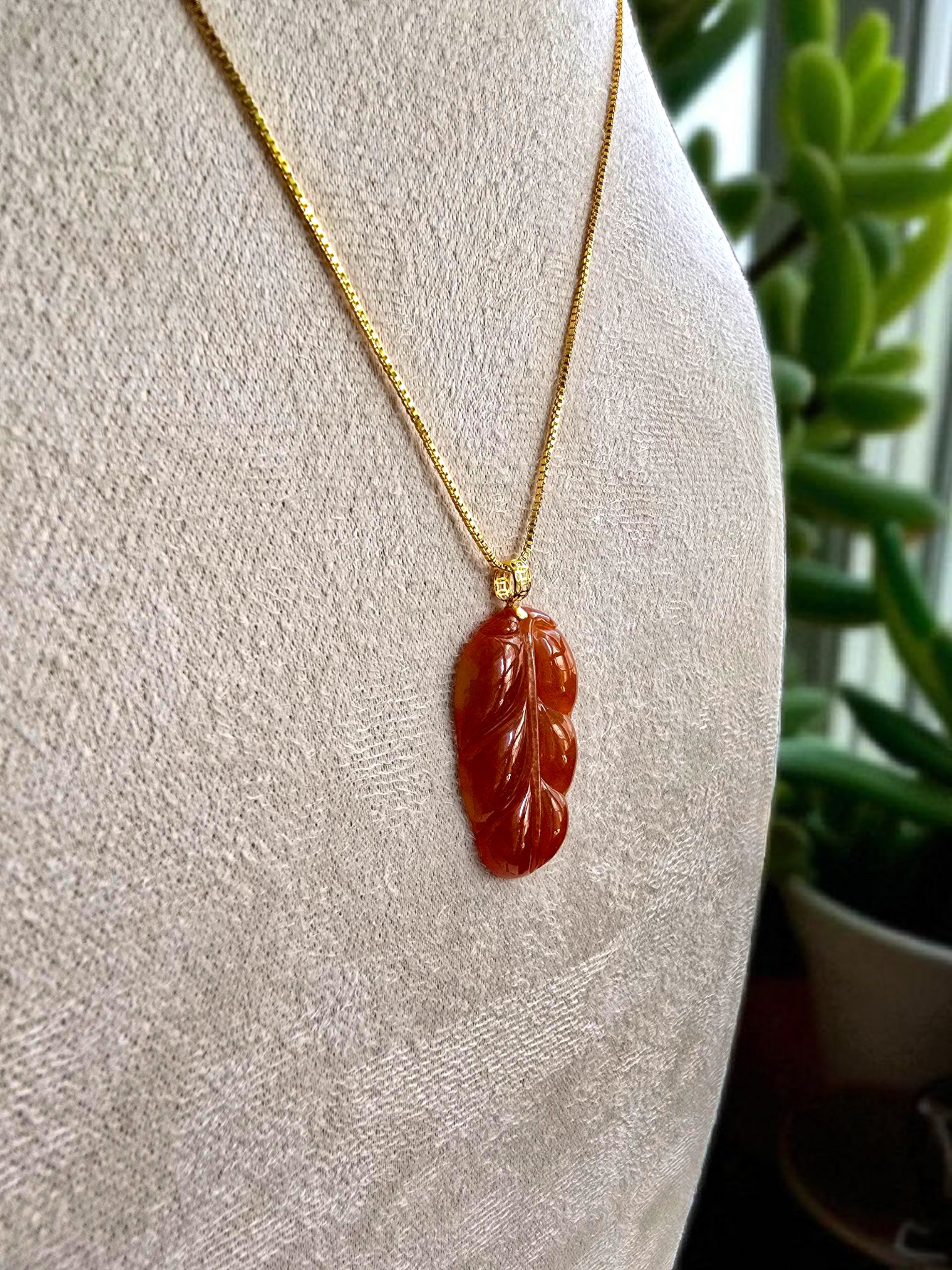 Aka Fuji Leaf (MADE IN JAPAN) Burmese Red Crimson A-Jadeite Charm Pendant (with 18K Yellow Gold) - Certified