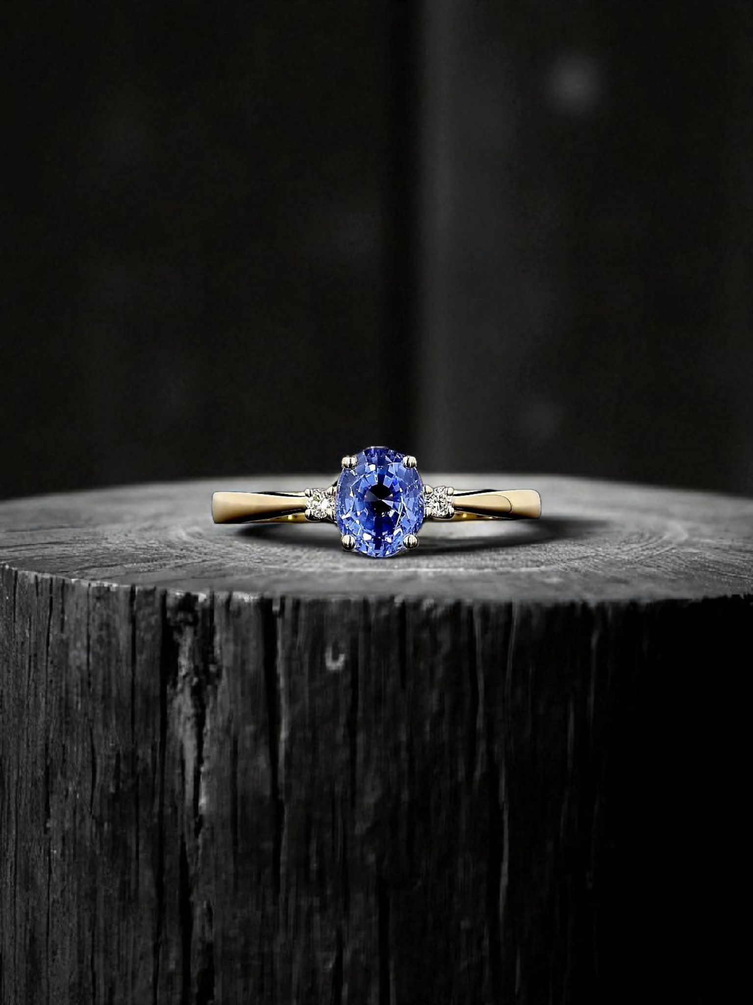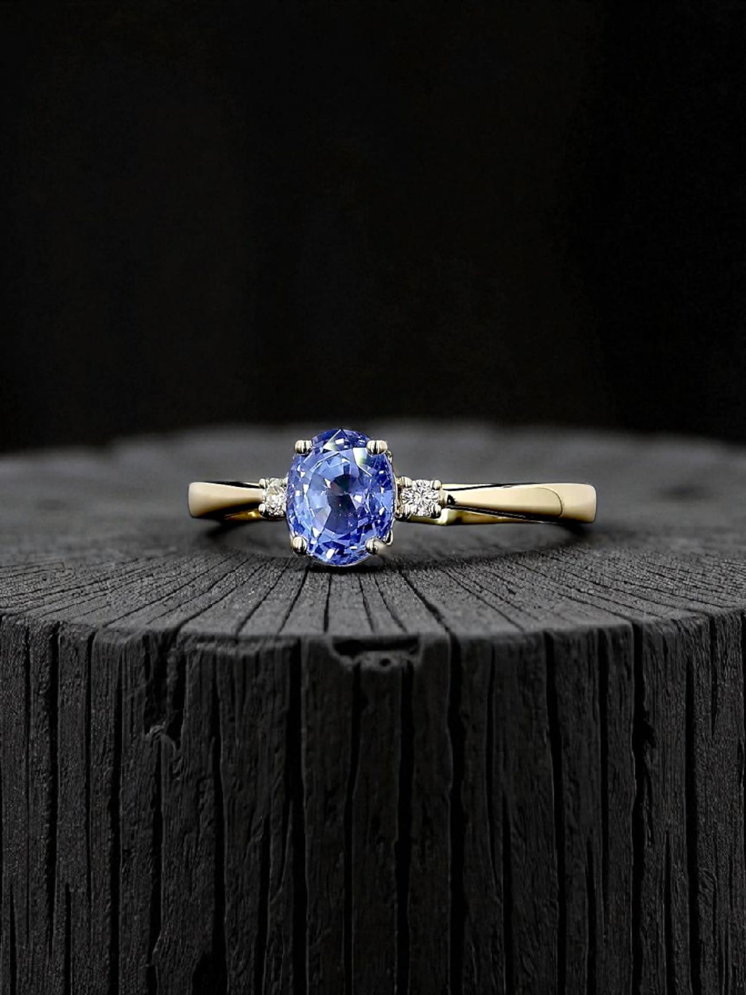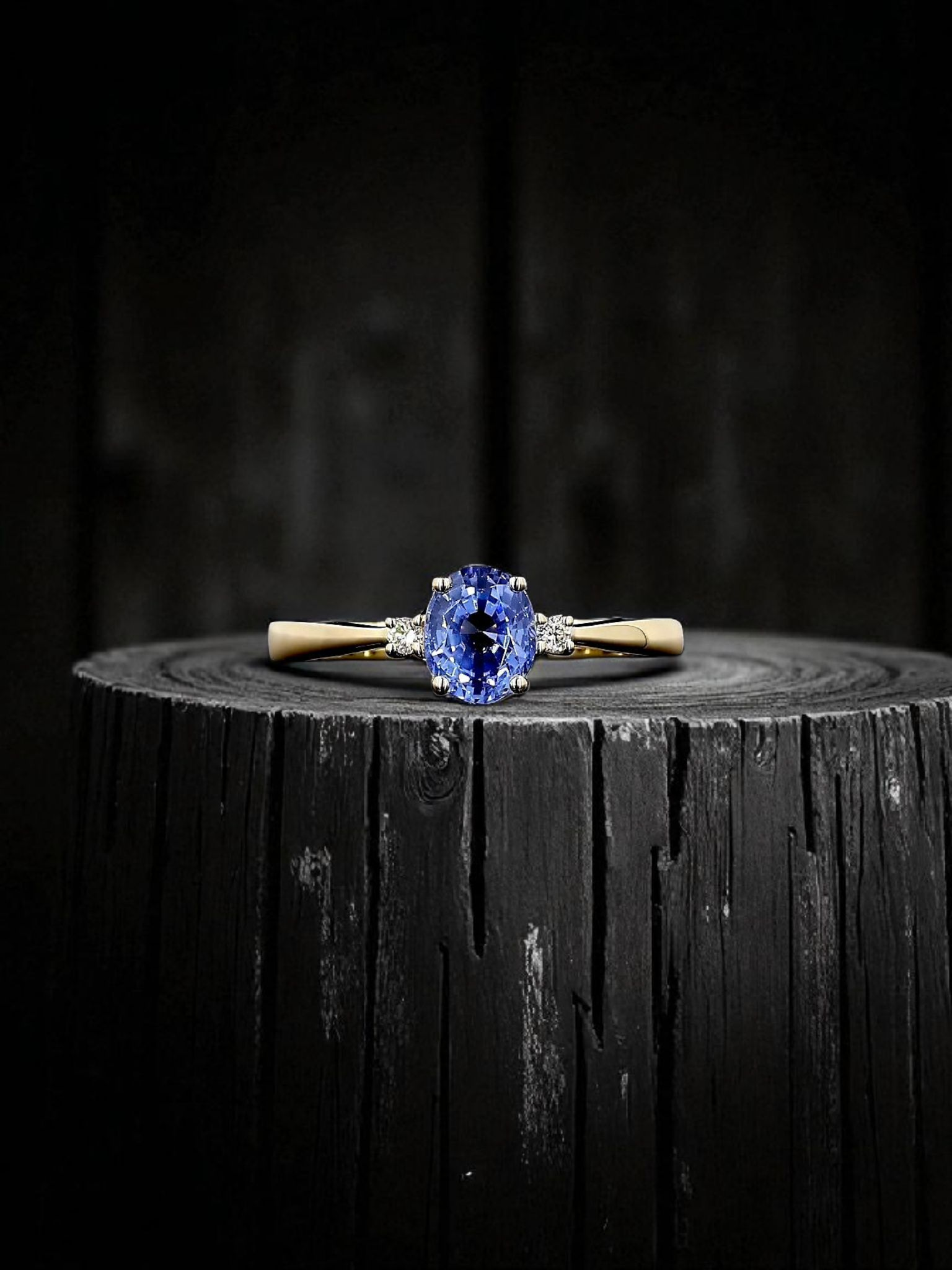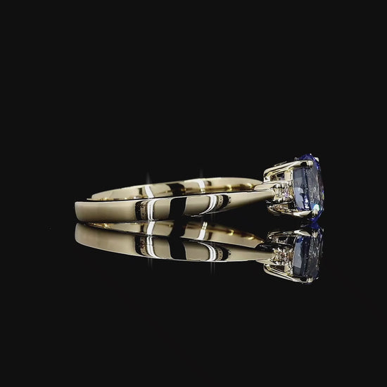 Certified Kyoto Oval Shaped 1.17 cts. No Heat Natural Blue Sapphire Ring with 14K Yellow Gold and White Diamonds Size US 6.5 - R7