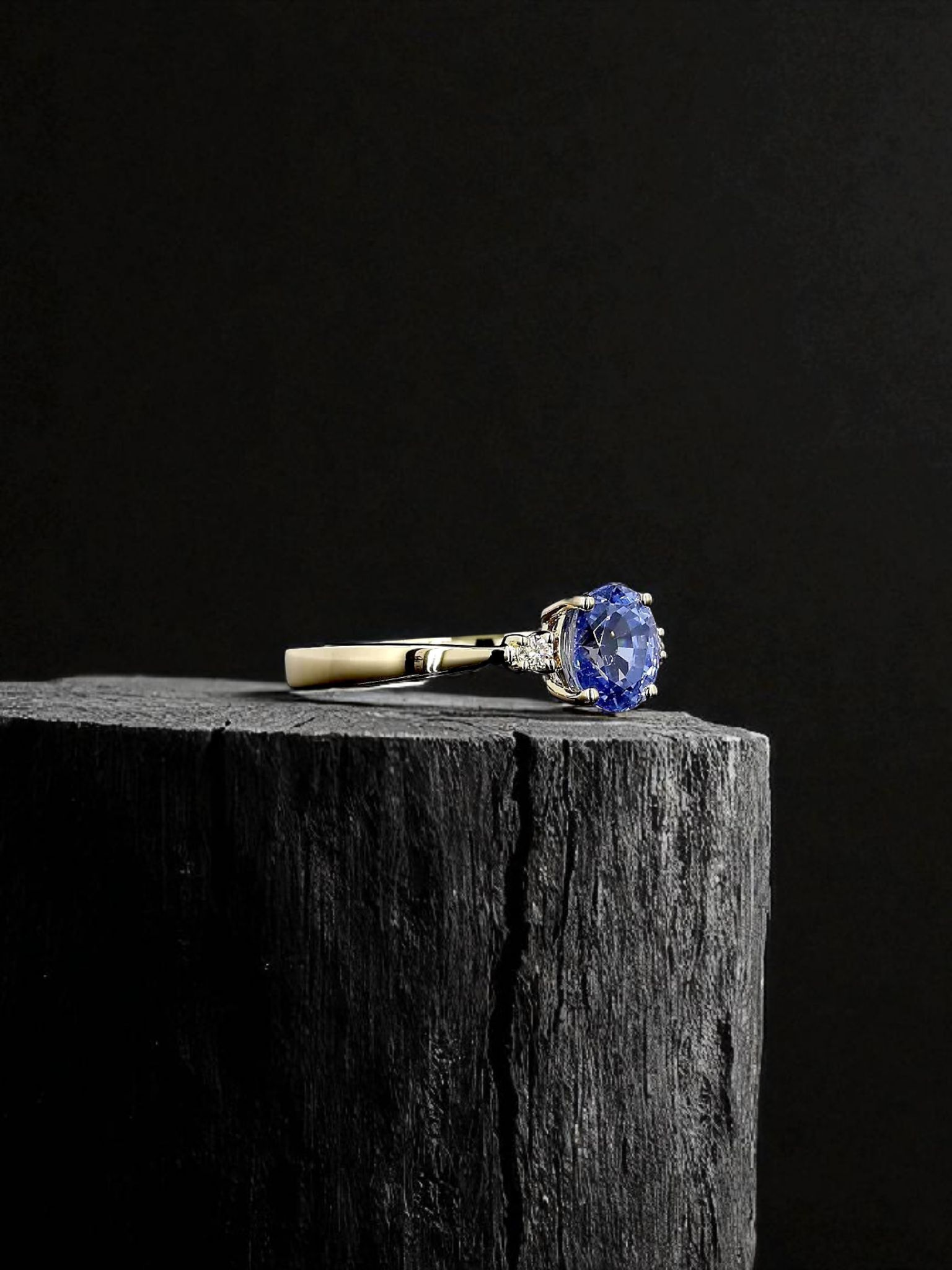 We add our two natural white VS Round Brilliant diamonds on each side to create a visual masterpiece, where the light shines through to the center stone to bring out the depth of color, whilst also create a sparkle and shine.