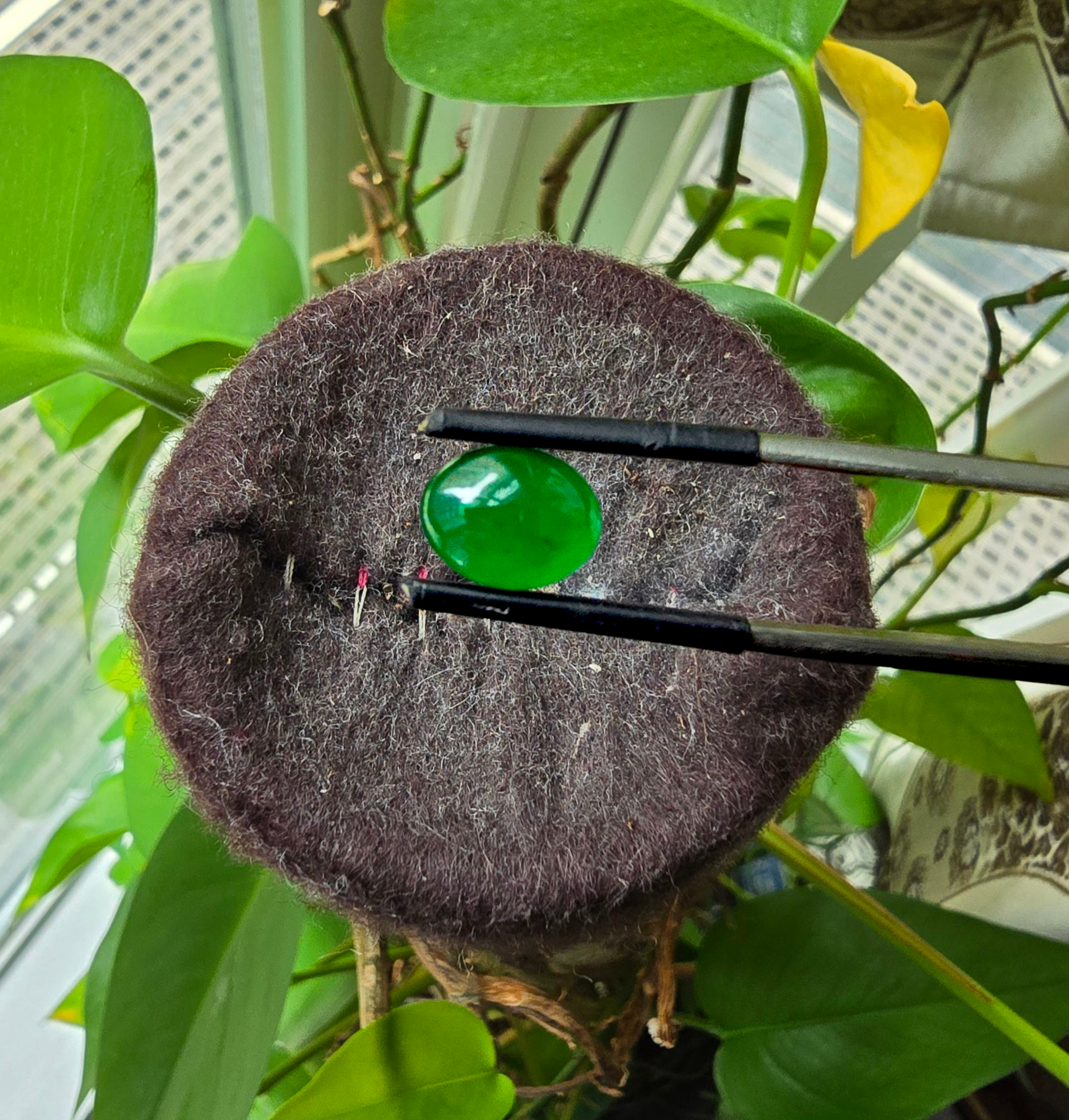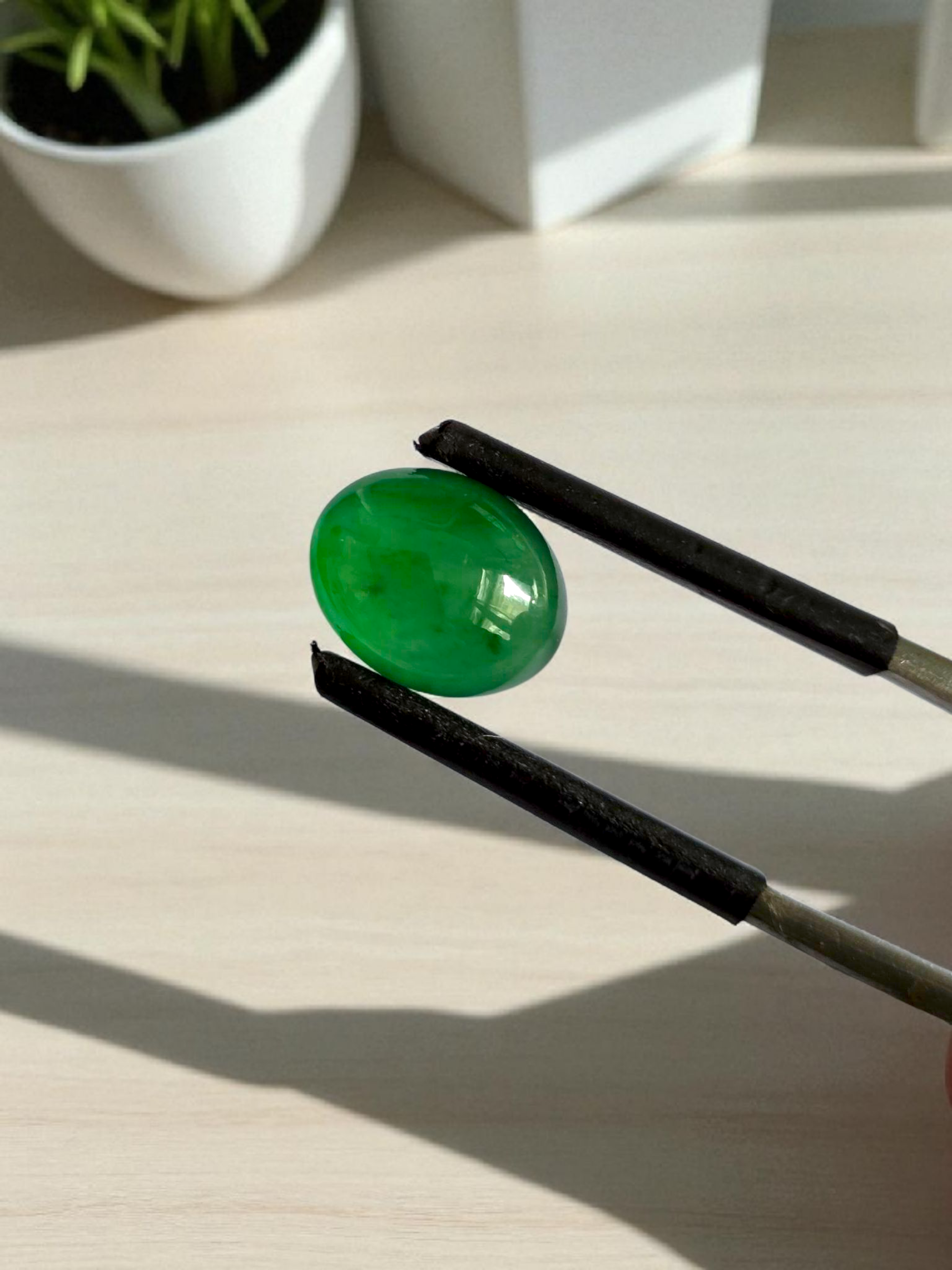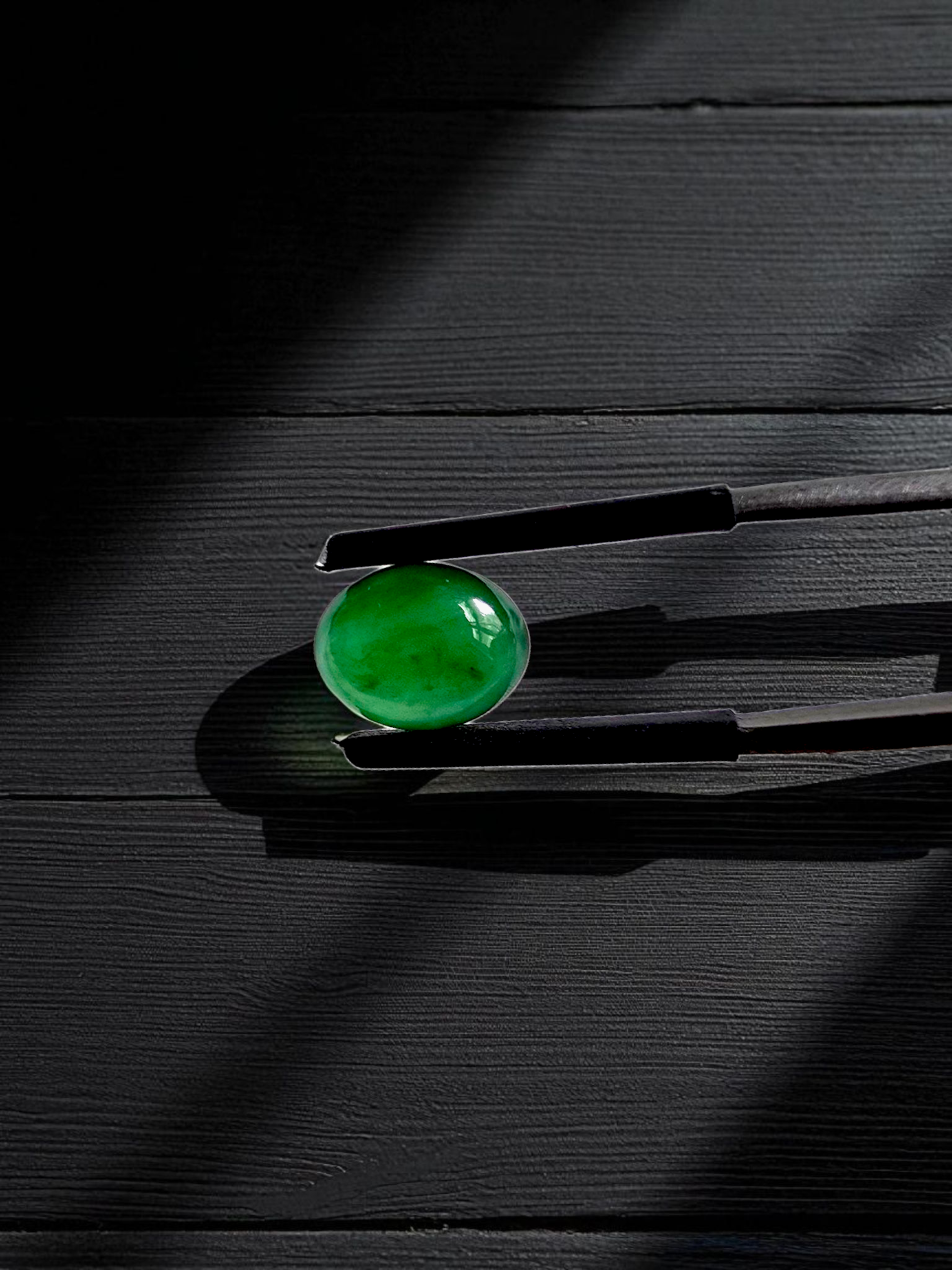 Materials: Intense Green Burmese A-Jadeite Cabochon