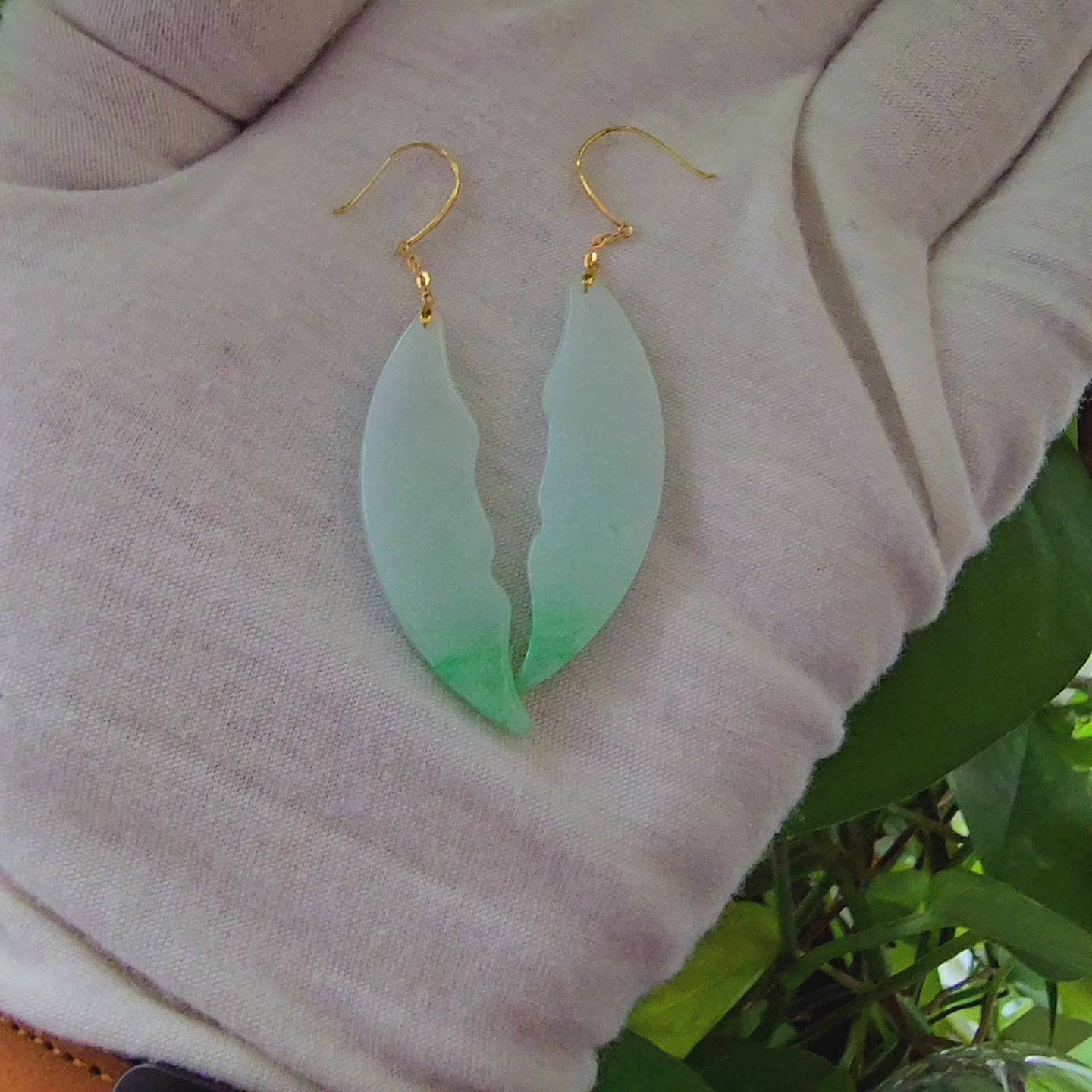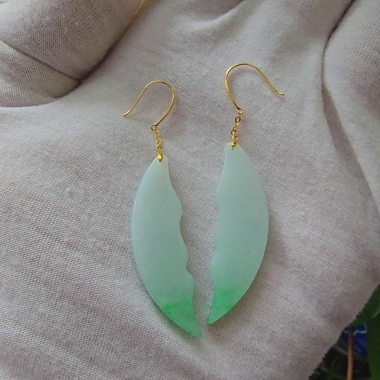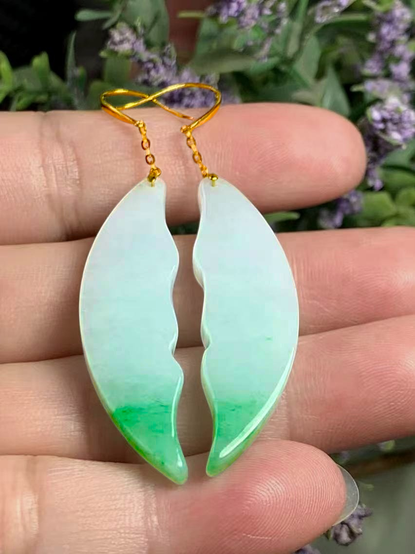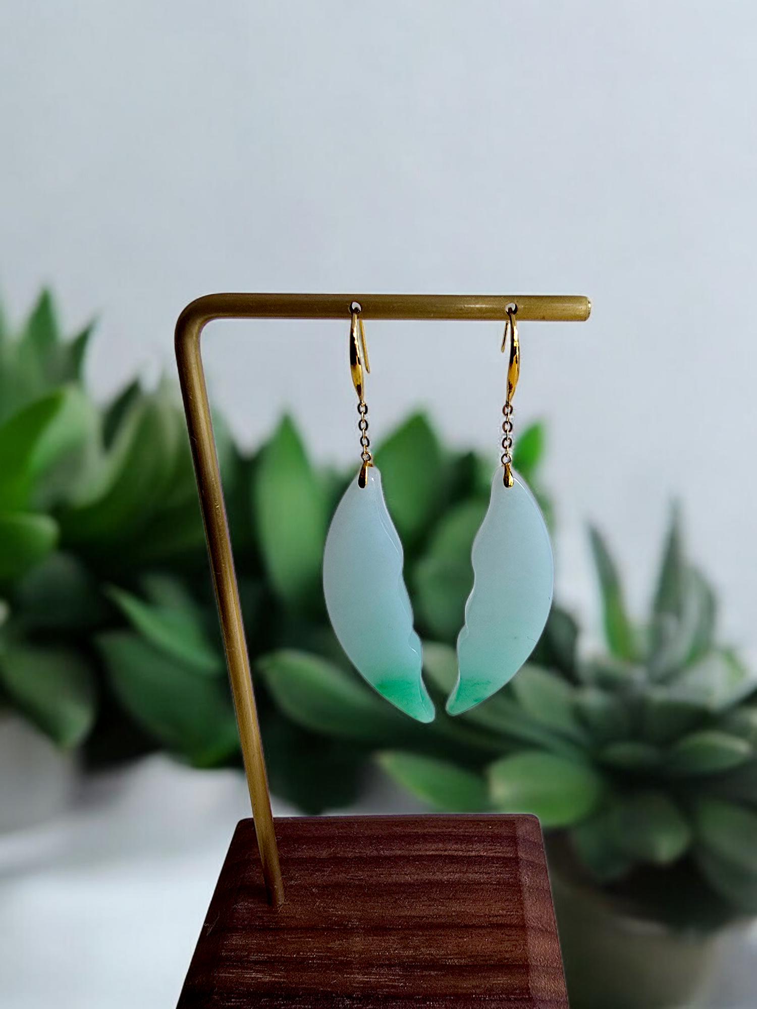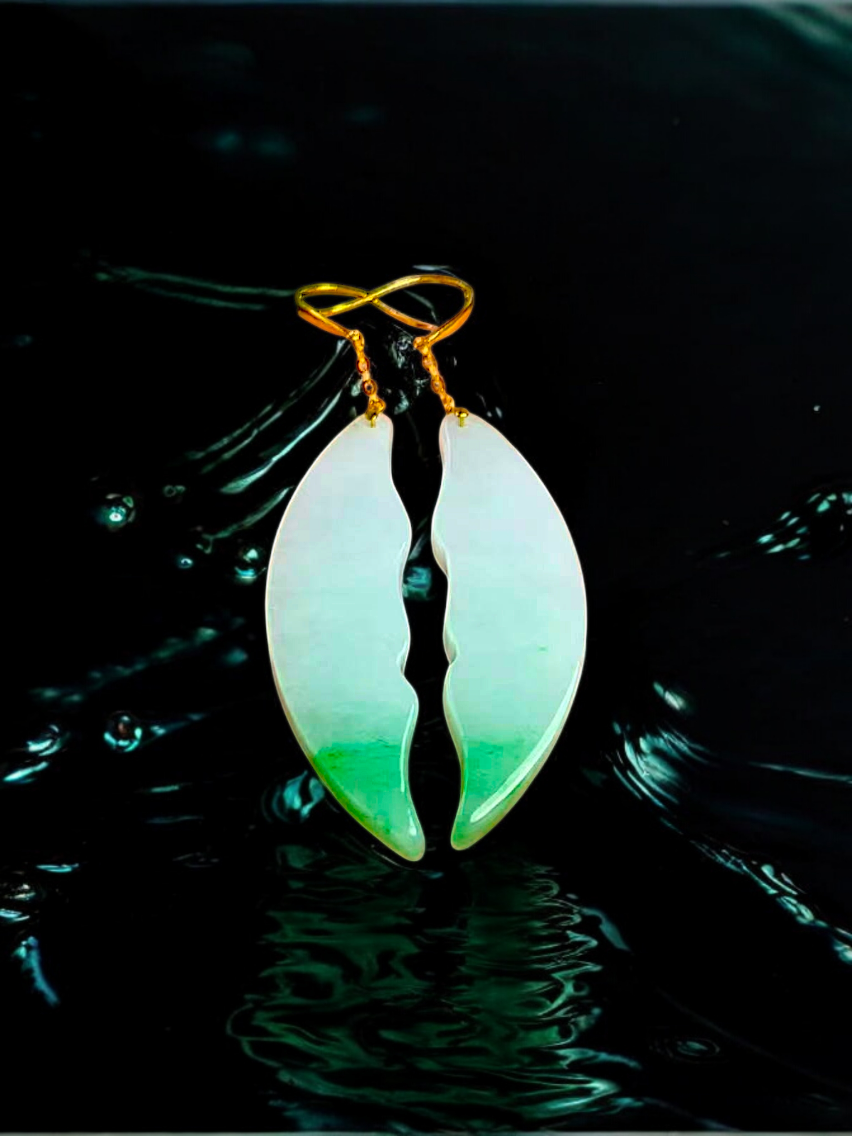Our Certified Shingetsu Crescent Drop and Dangle French Hook Burmese A-Jade Earrings (with 18K Yellow Gold) are made from handpicking Green Burmese A-Jadeite, with superior translucency, hues and optics. 'Shingetsu' means New Moon, symbolising new beginnings and prosperity.