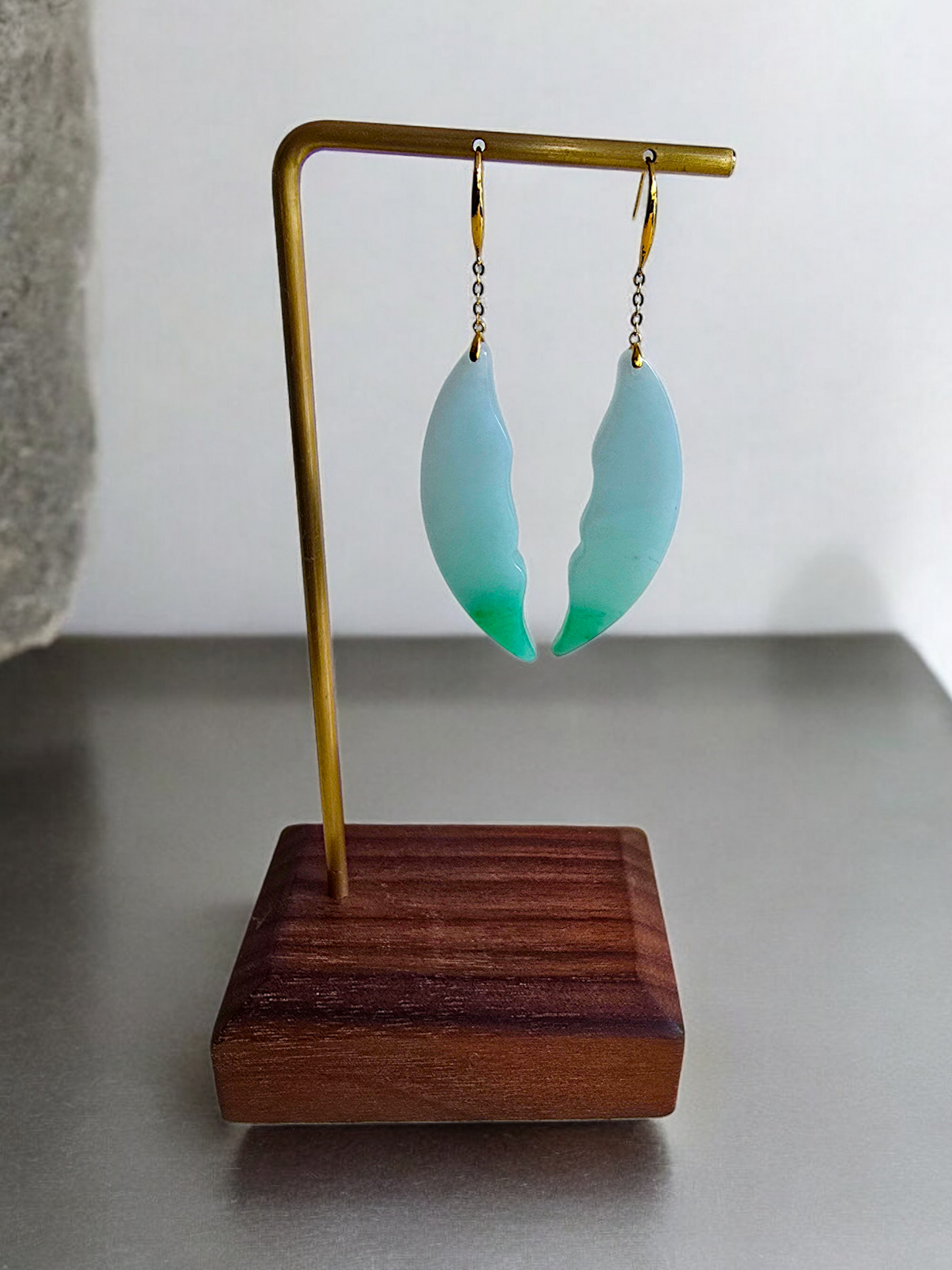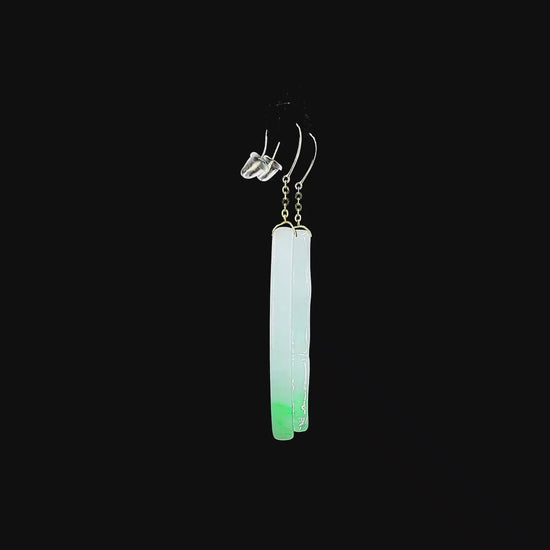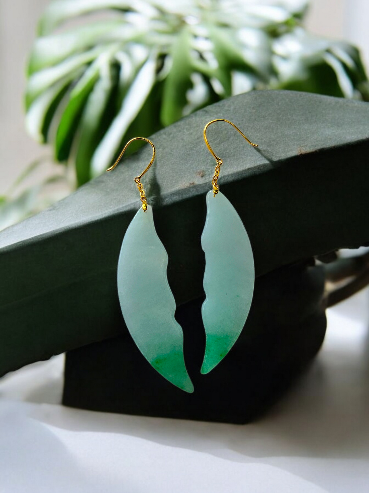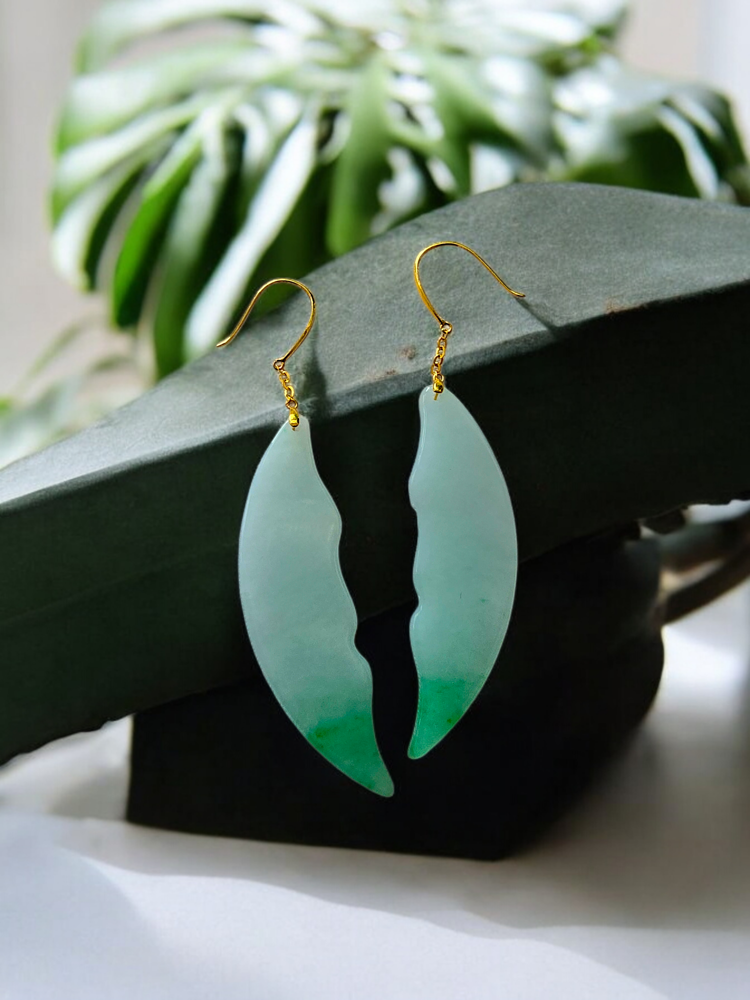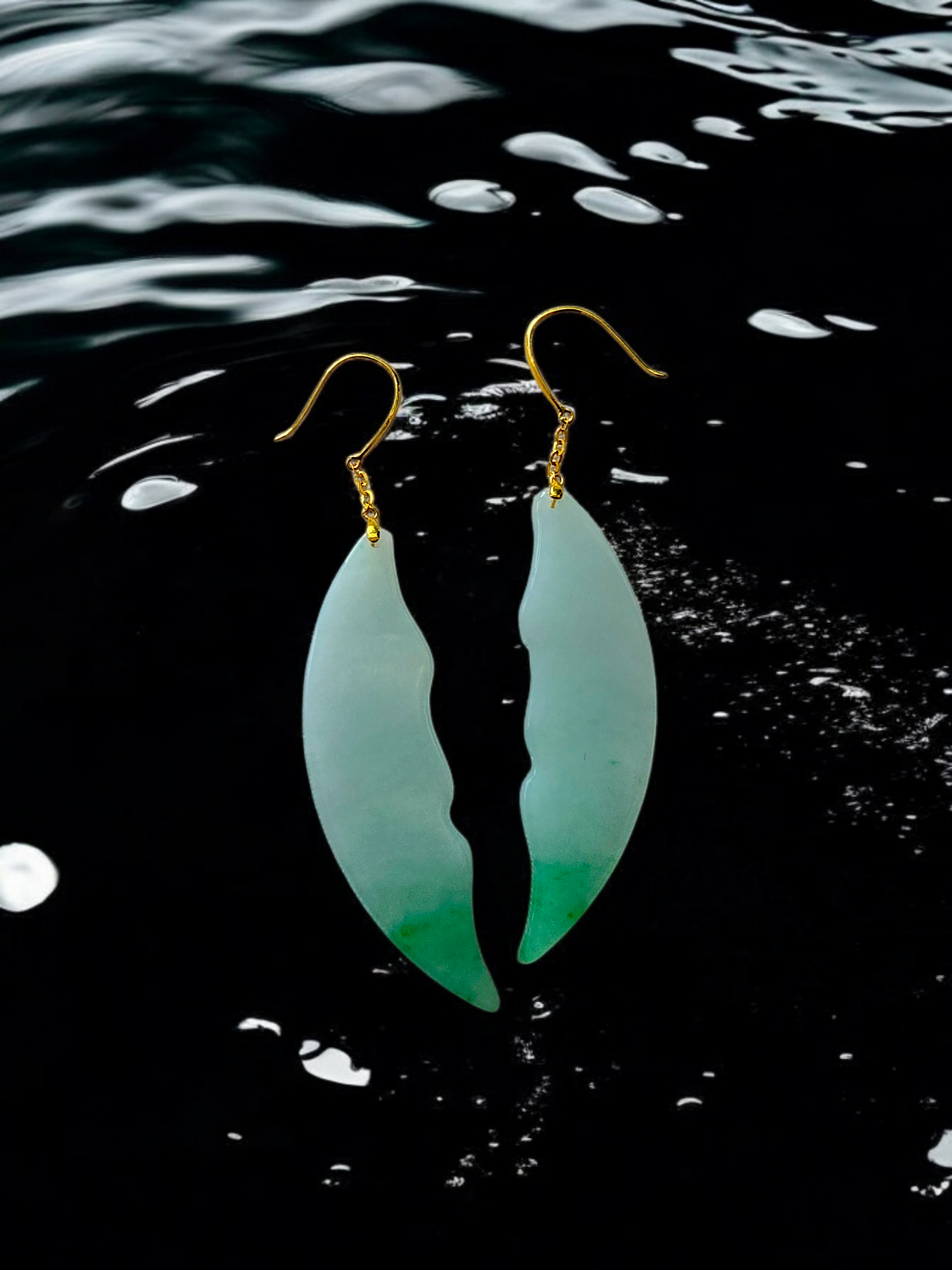 Our Certified Shingetsu Crescent Drop and Dangle French Hook Burmese A-Jade Earrings (with 18K Yellow Gold) are made from handpicking Green Burmese A-Jadeite, with superior translucency, hues and optics. 'Shingetsu' means New Moon, symbolising new beginnings and prosperity.