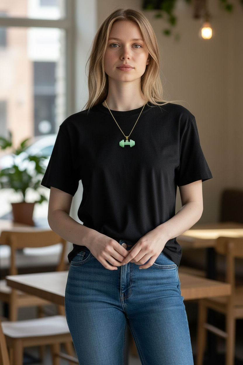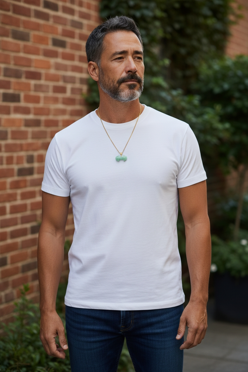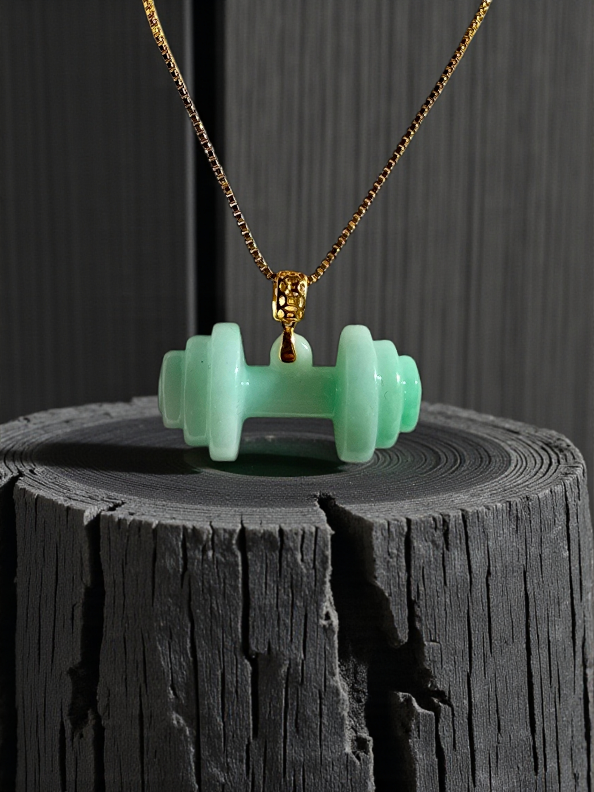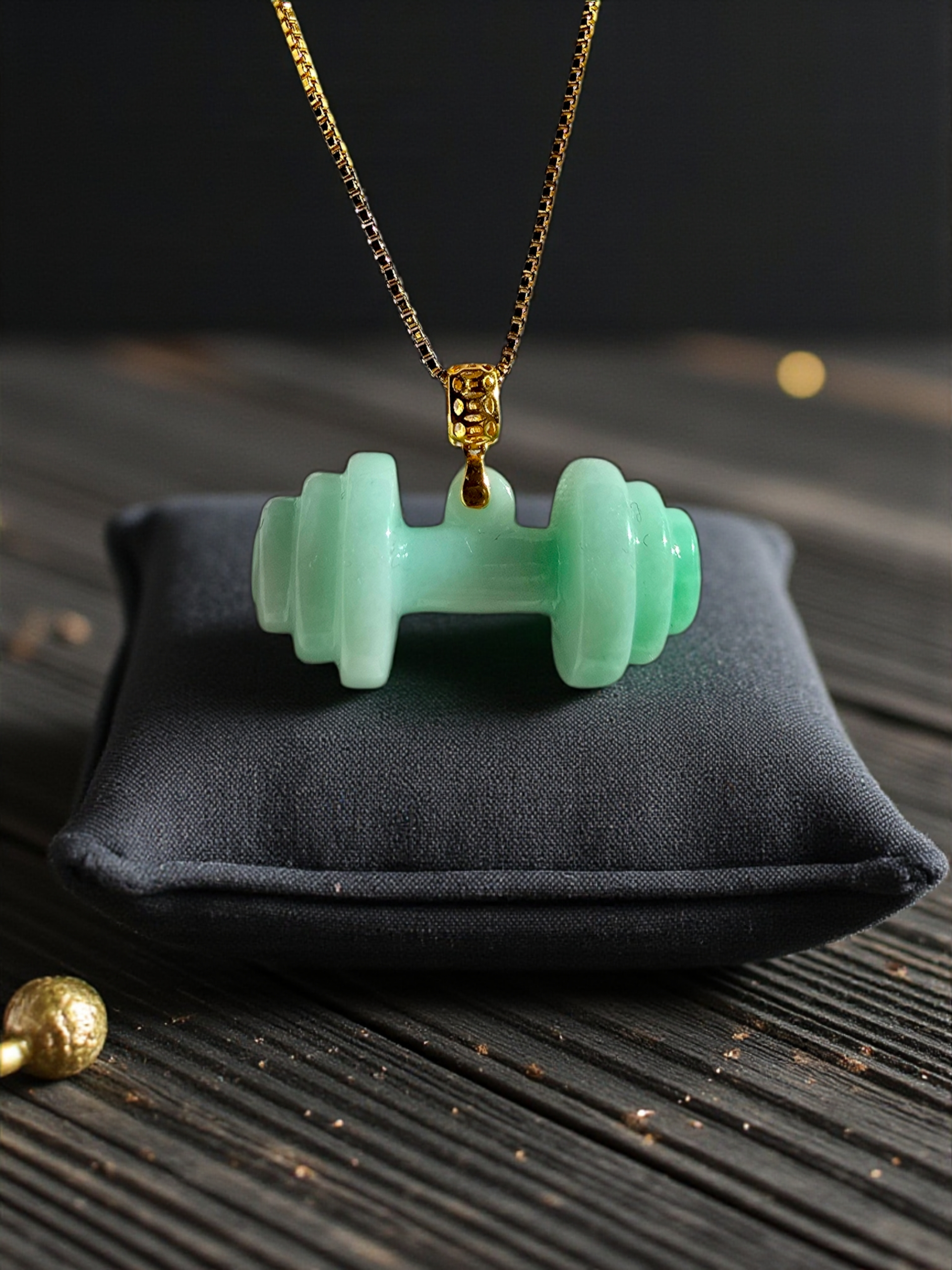 Chikara Gym Dumbbell Burmese A-Jadeite Charm Pendant (with 18K Yellow Gold)- Certified