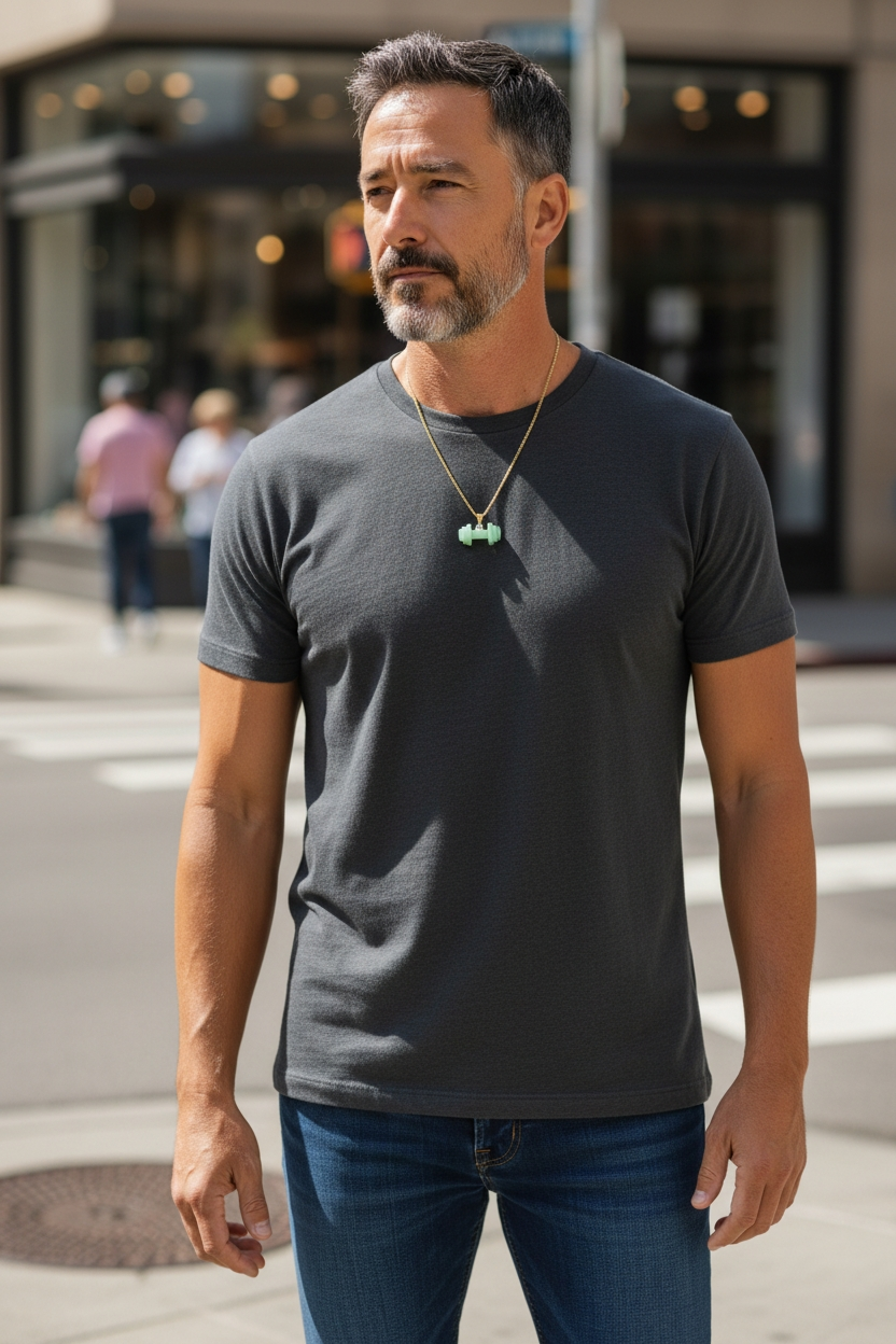 Our Dumbbell Charm Pendant is carved by our expert artisans.
