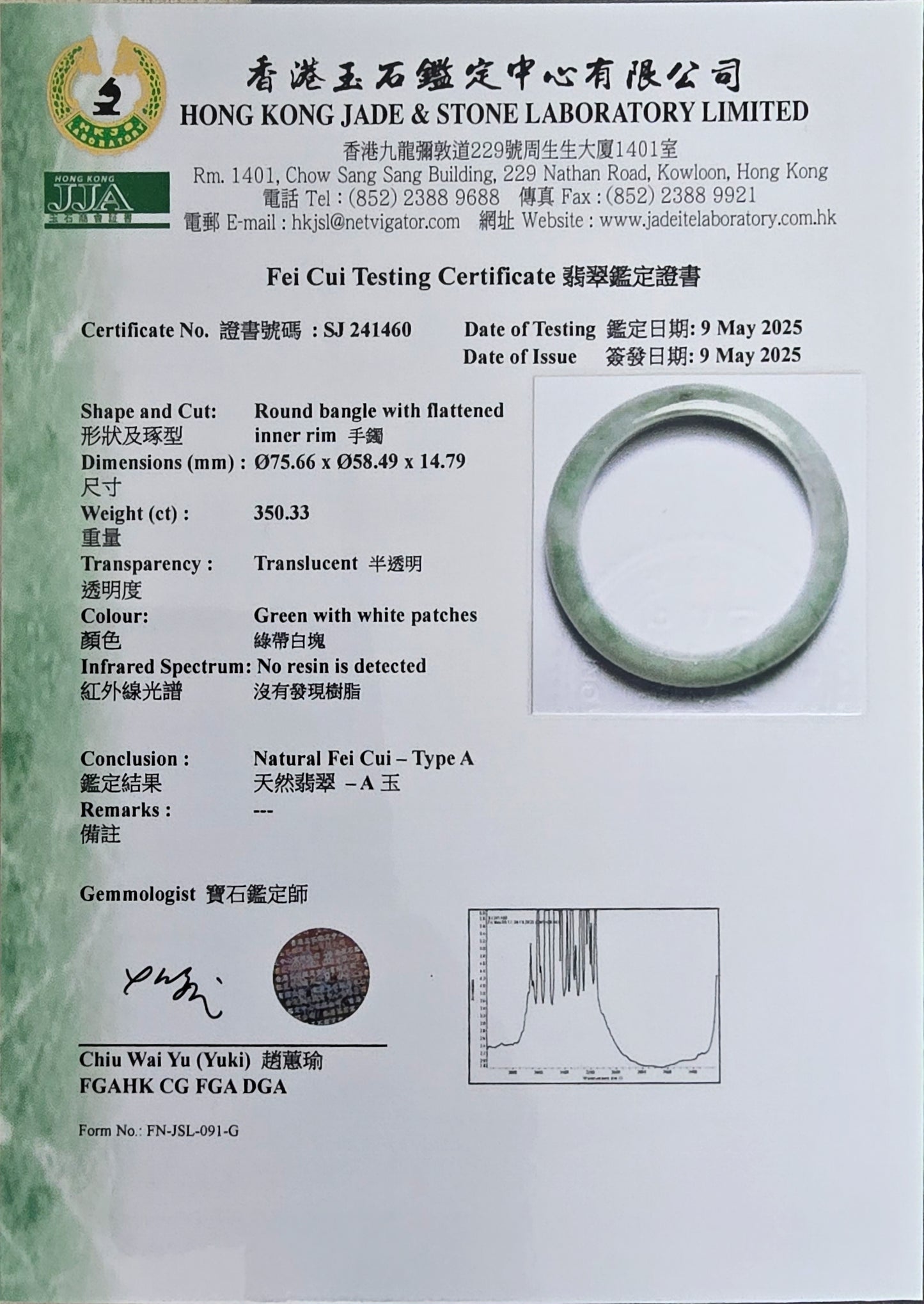 Earth's (MADE IN JAPAN) Burmese Green A-Jade Round Bangle Bracelet - Certified 08824