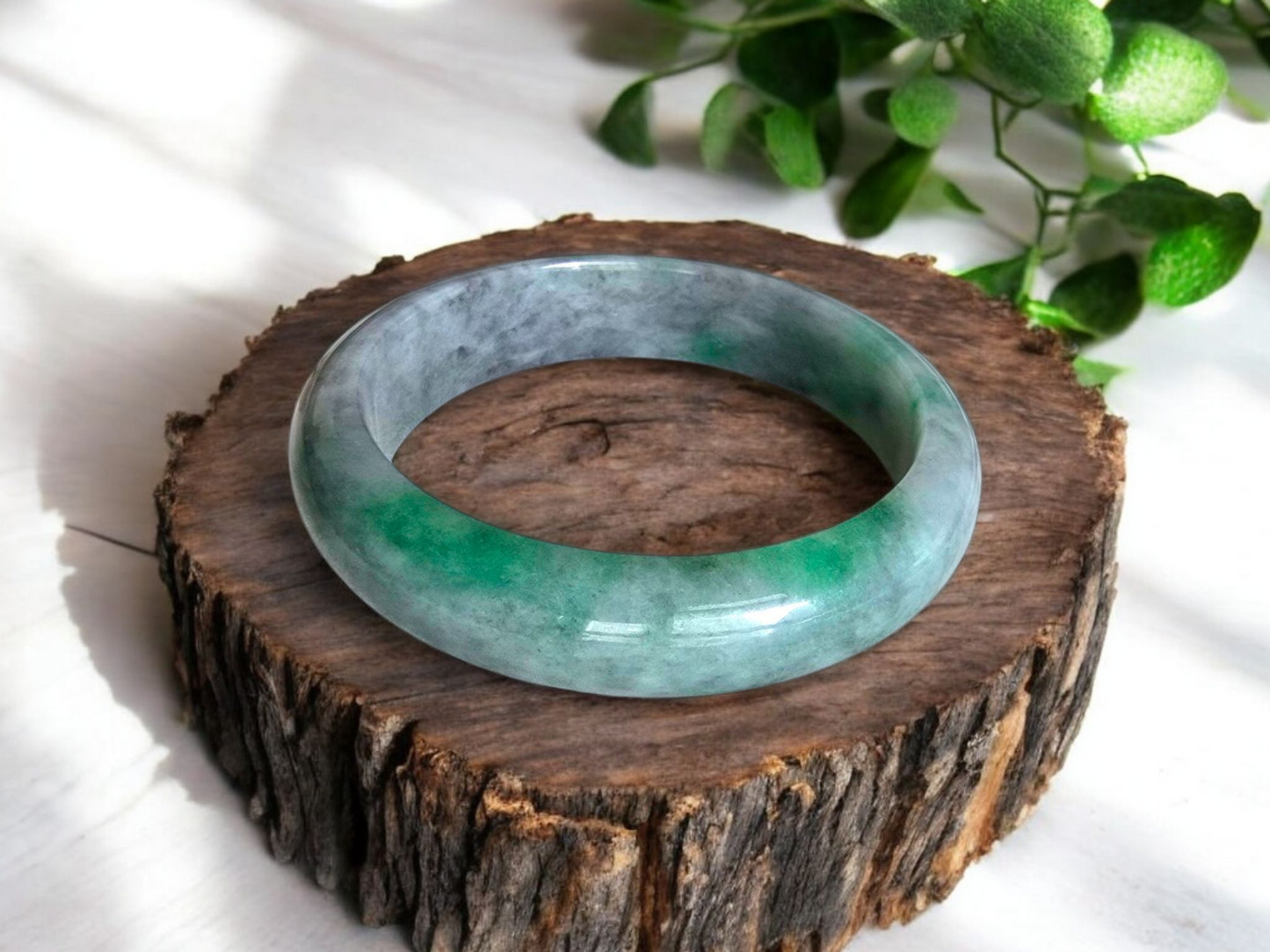 Earth's Burmese Green A-Jade Jadeite Round Bangle Bracelet - MADE IN JAPAN- Certified - 08825