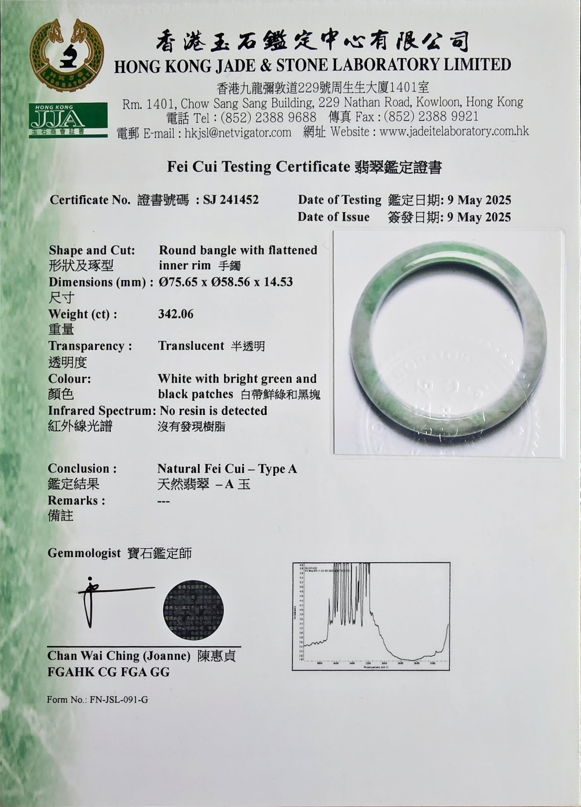 Earth's (MADE IN JAPAN) Burmese Green A-Jade Round Bangle Bracelet - Certified 08825