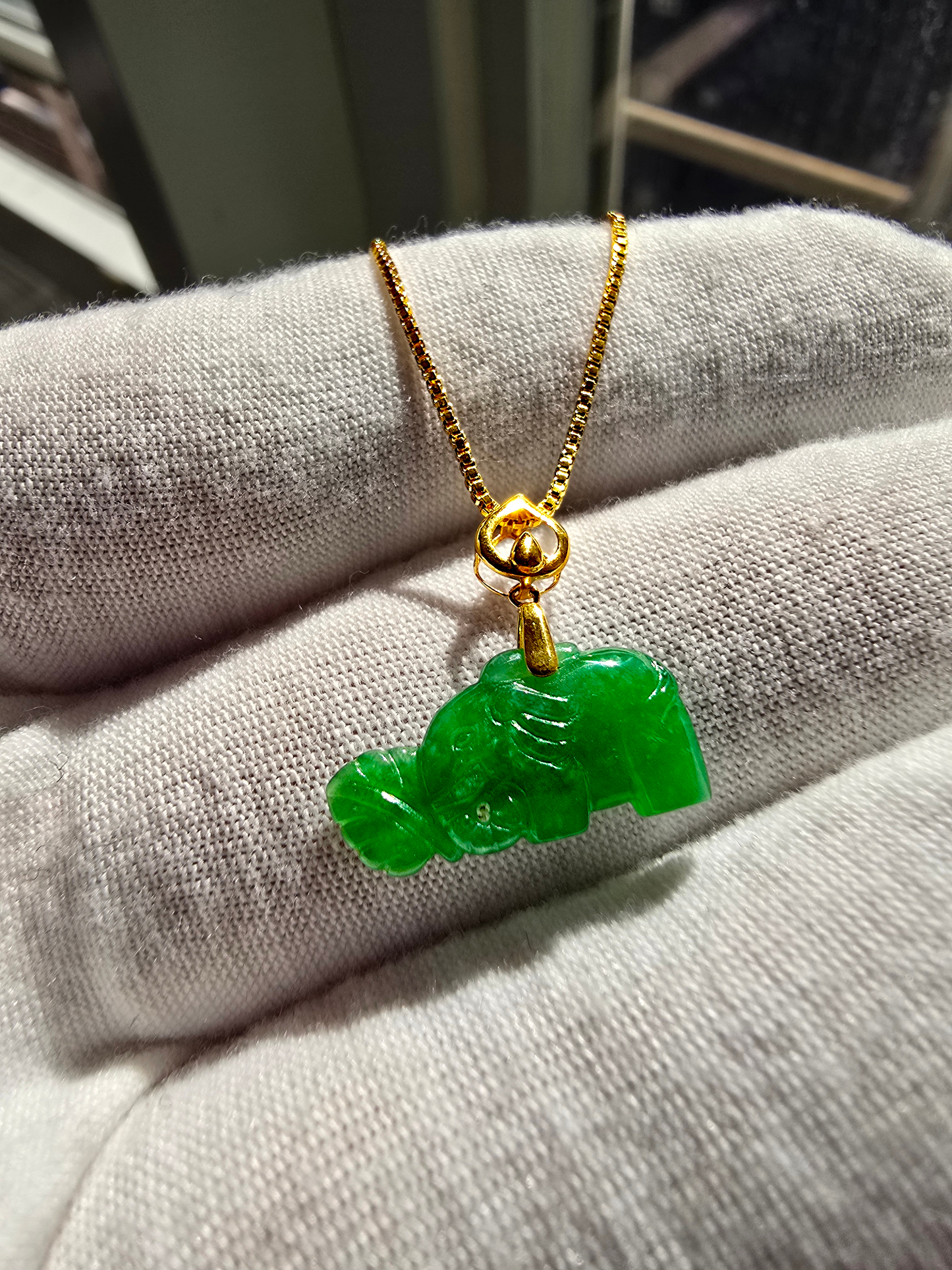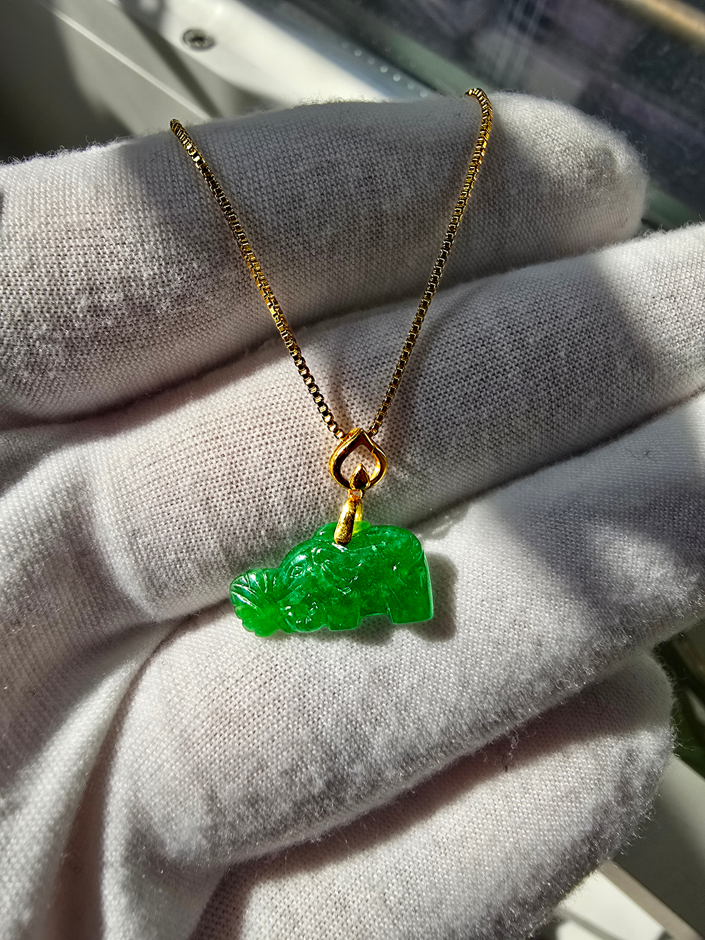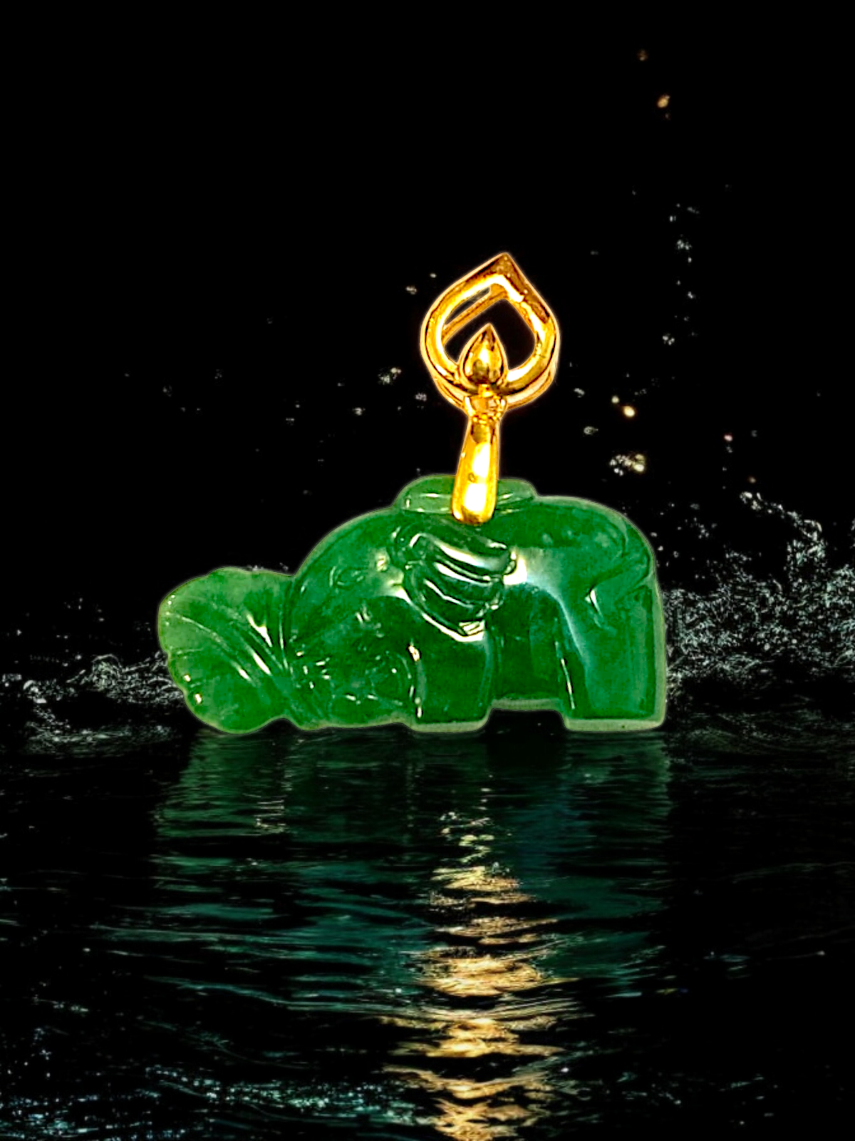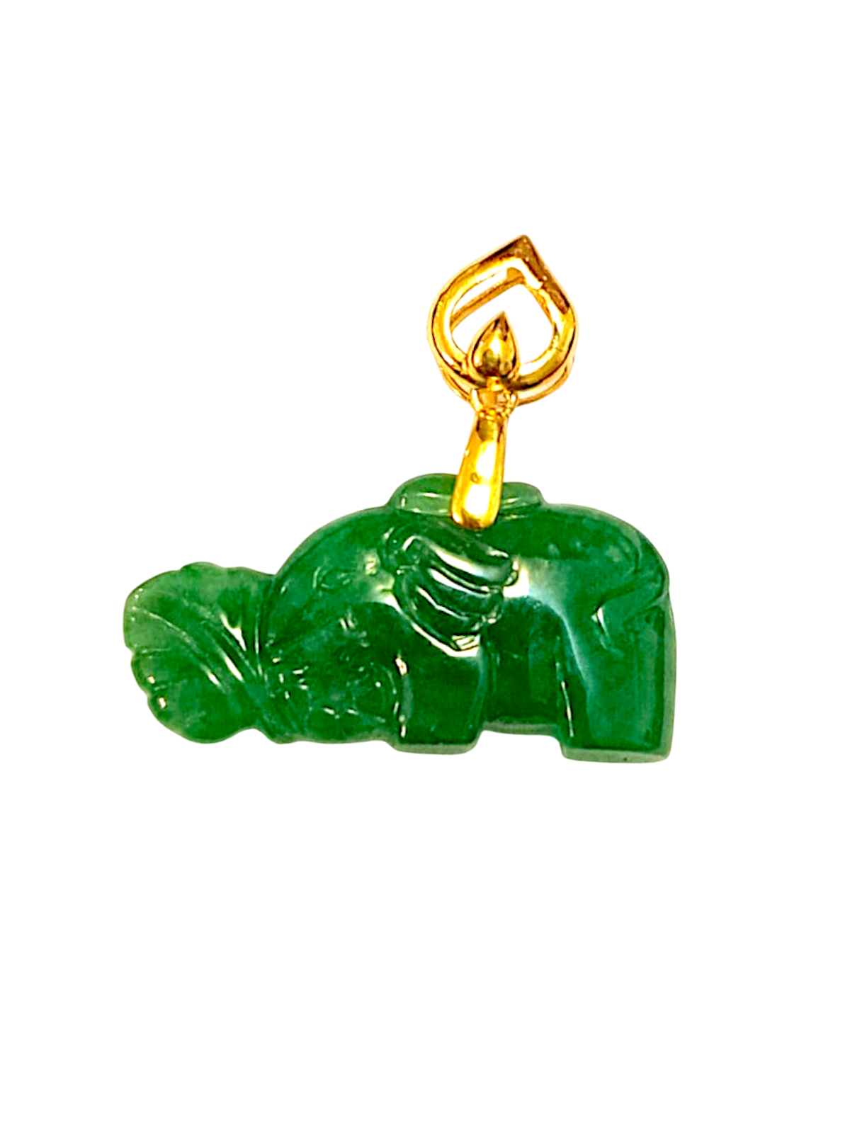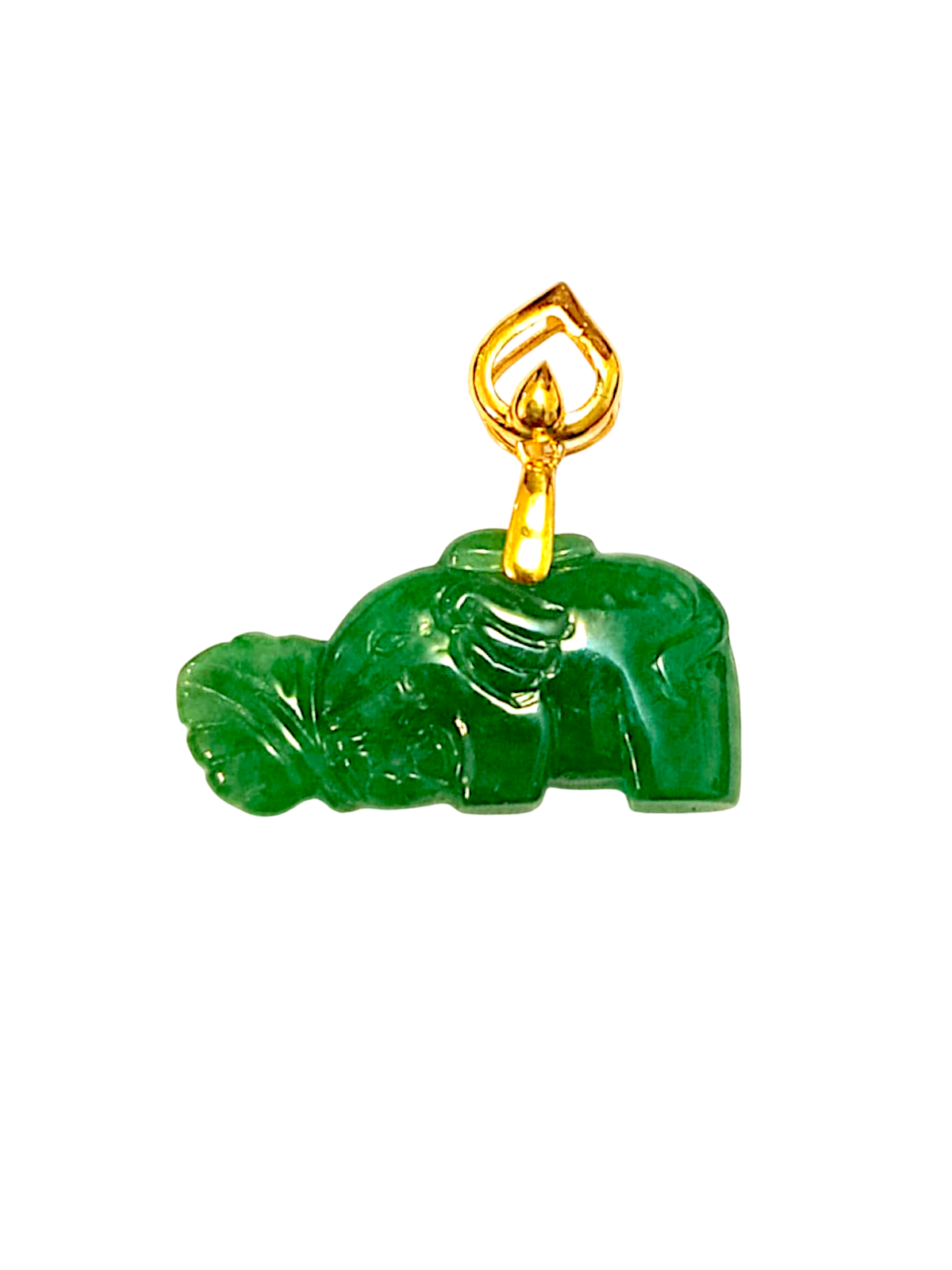 Elephant from Nagano Imperial Burmese A-Jade Charm Pendant with 18K Yellow Gold - Certified