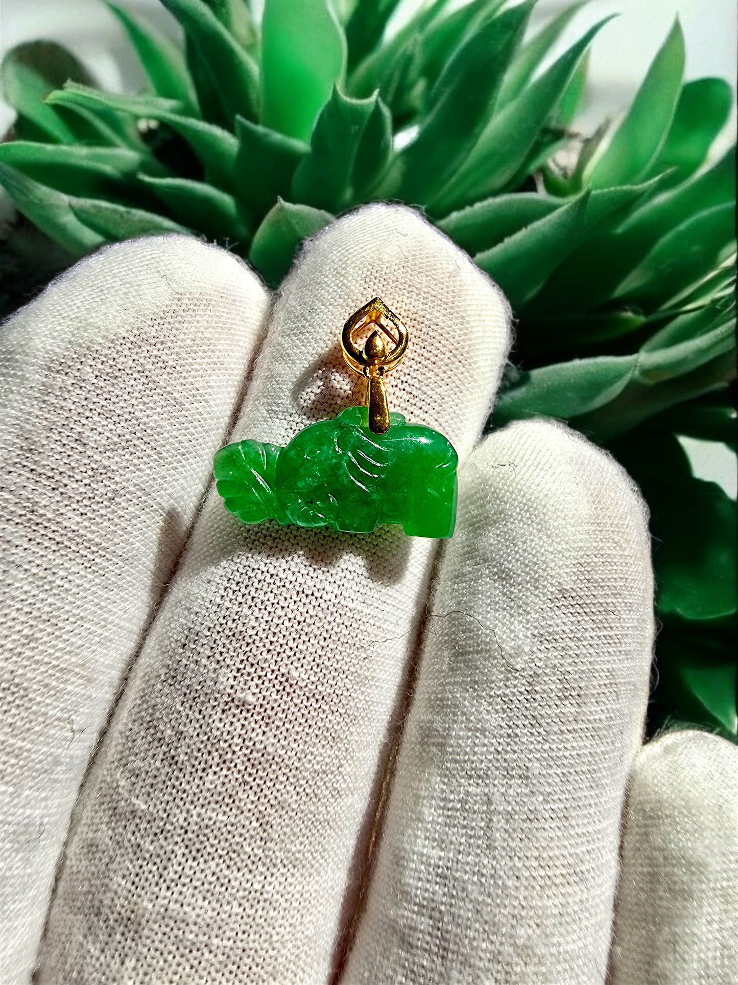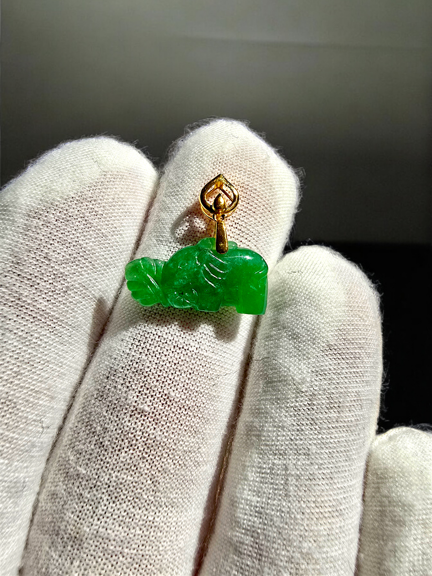 Certified Elephant from Nagano Imperial Green Burmese A-Jade Jadeite Charm Pendant with Solid 18K Yellow Gold