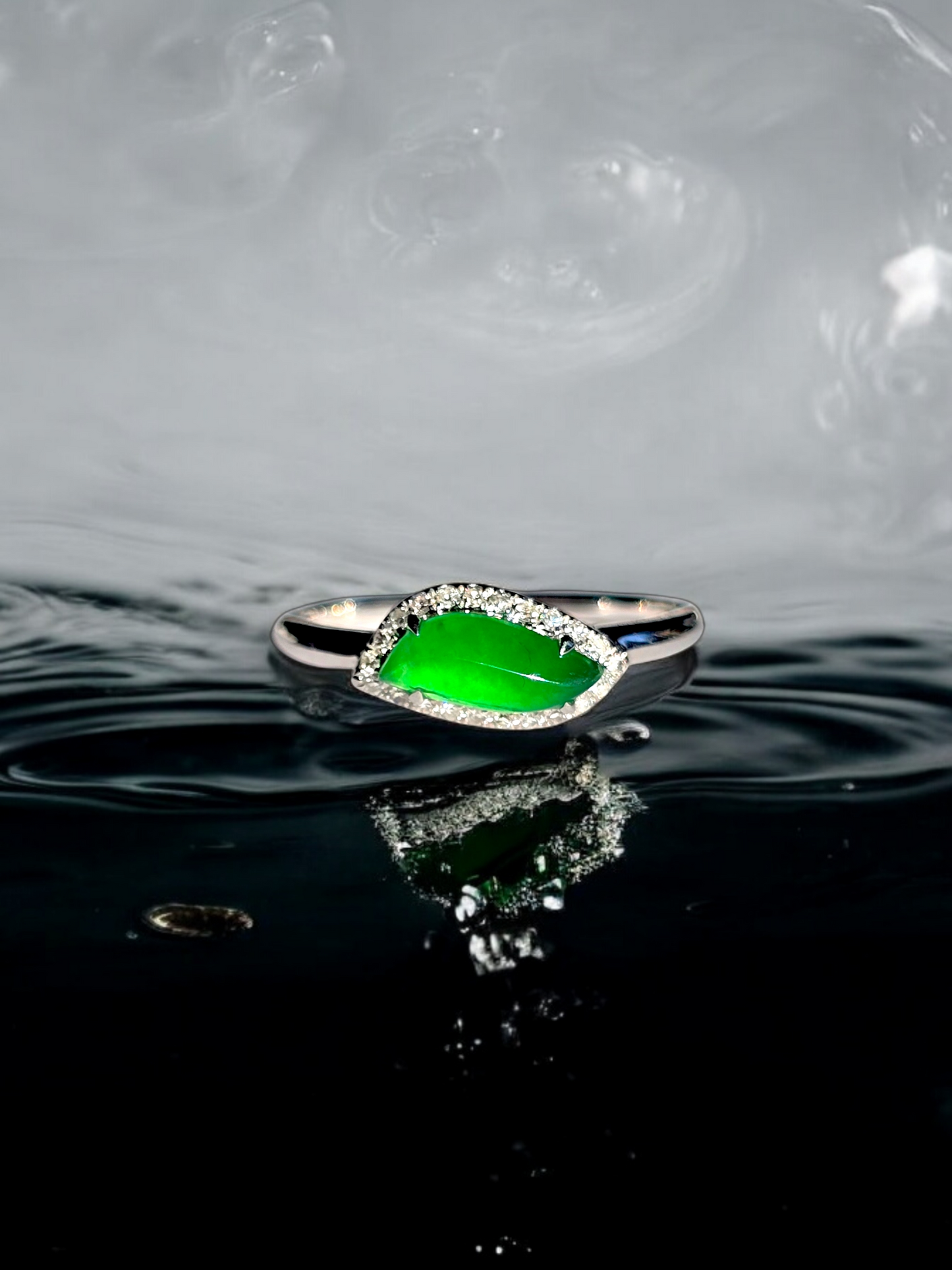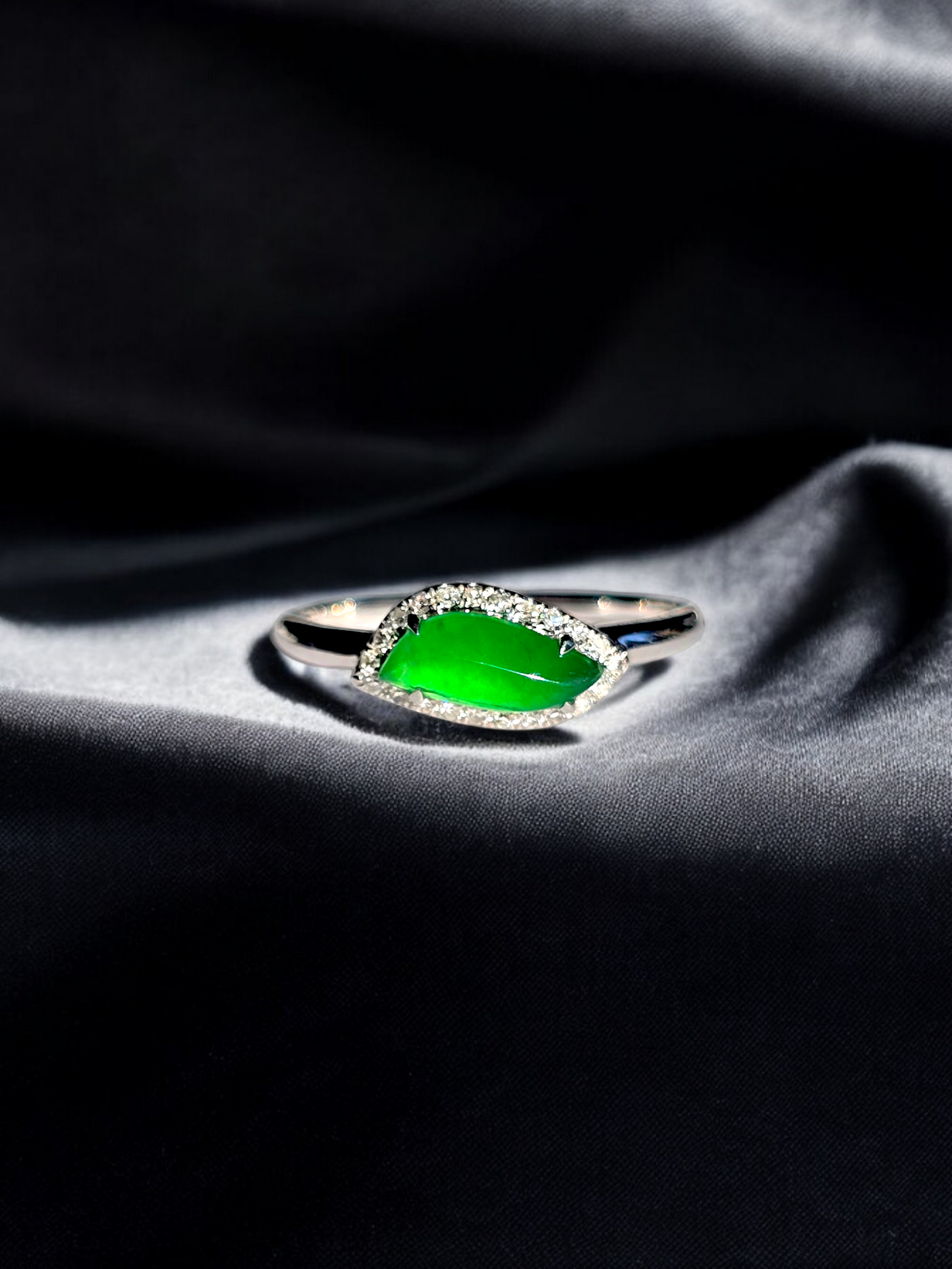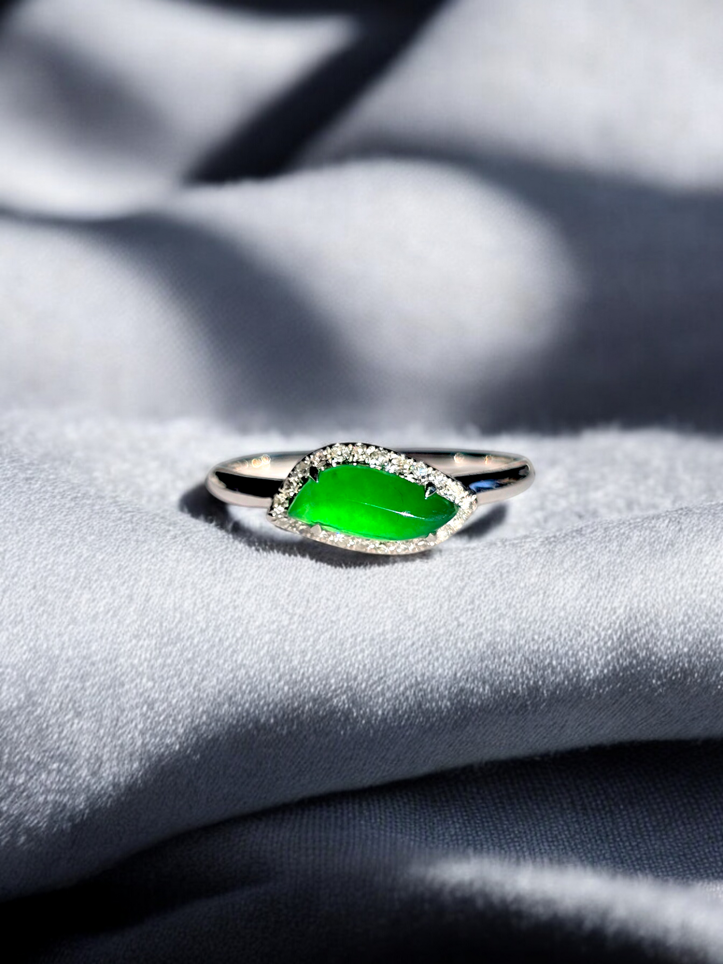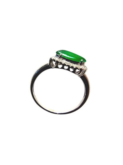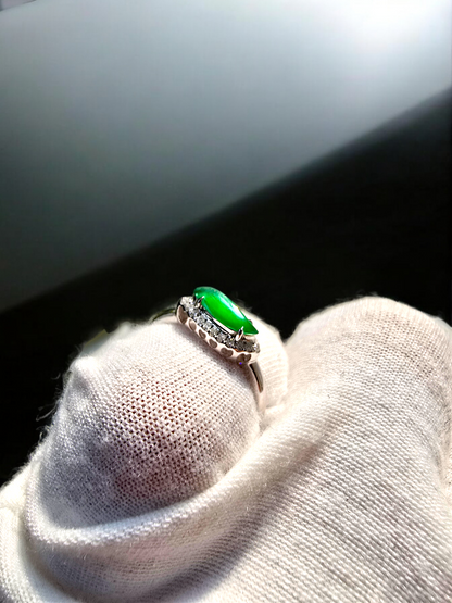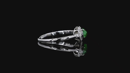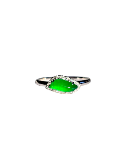 Flow Leaf Burmese A Jade Ring, with White Diamonds, and 18K White Gold - HKJSL Certified