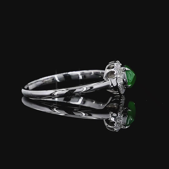No two Jadeite stones are ever created the same by nature, perfect for something truly exclusive. A great addition to any investment collection. The diamond Halo adds a scintillating sparkle, with the White Gold providing a canvas to showcase the gemstone.